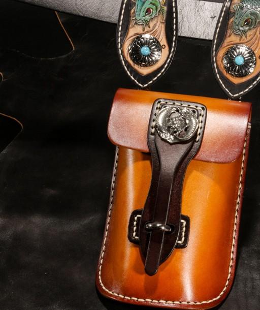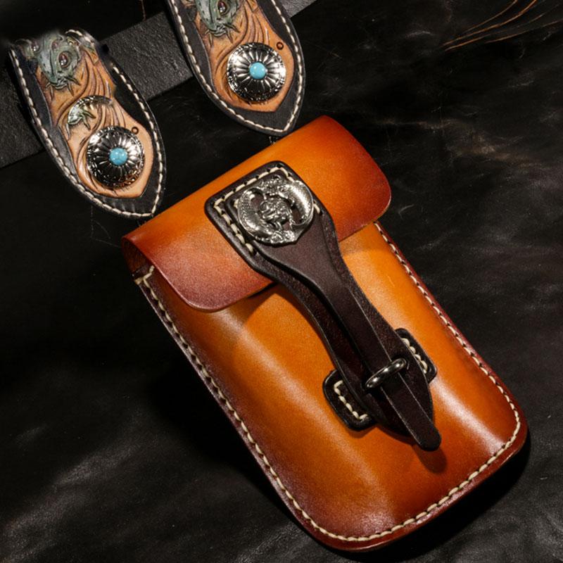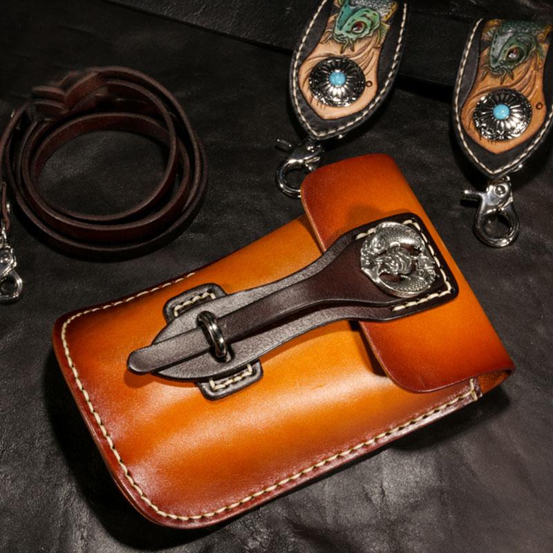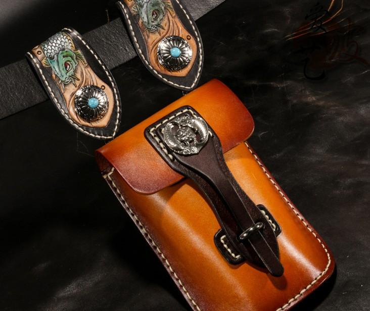 Design: Handmade Leather Carp Mens Waist Bag Hip Pack Belt Bag Fanny Pack Bumbag for Men