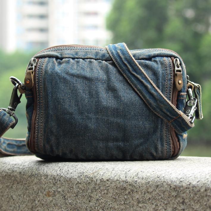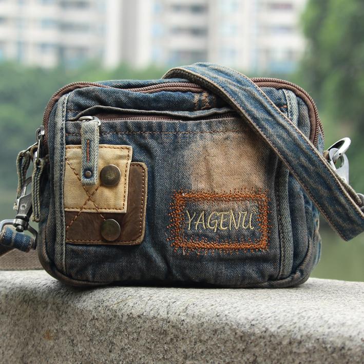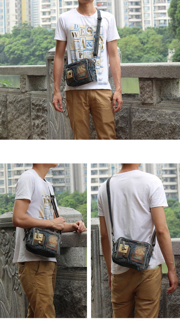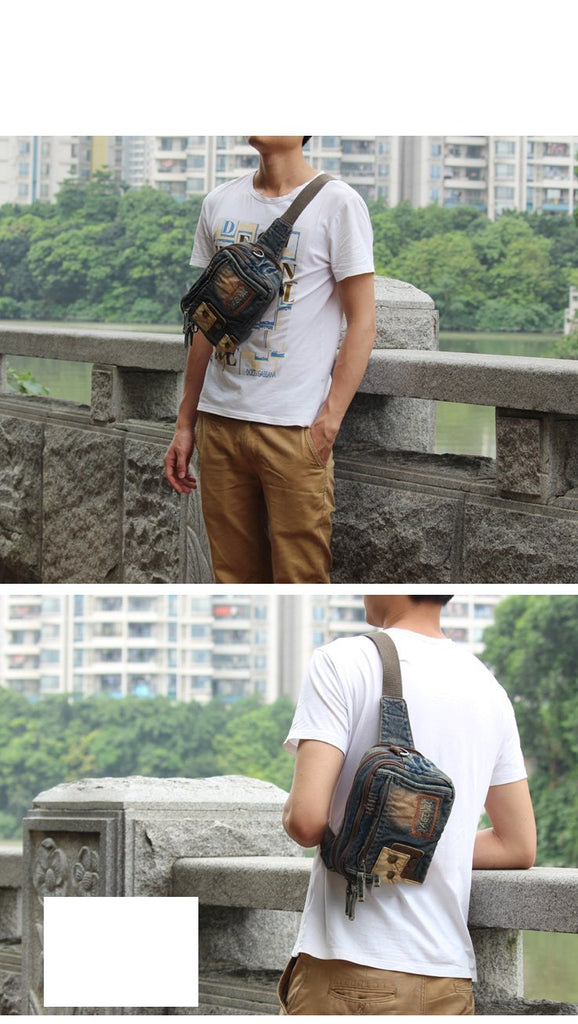 Style: Jean Denim Blue Mens Small Sling Bag Chest Bag Jean One Shoulder Backpacks For Men