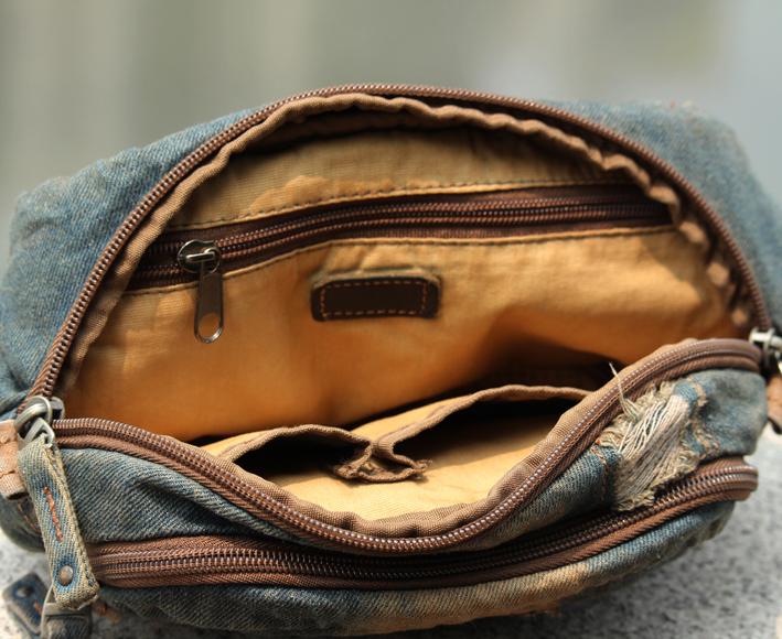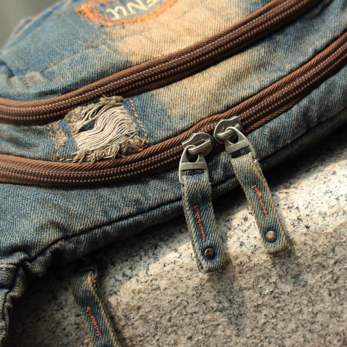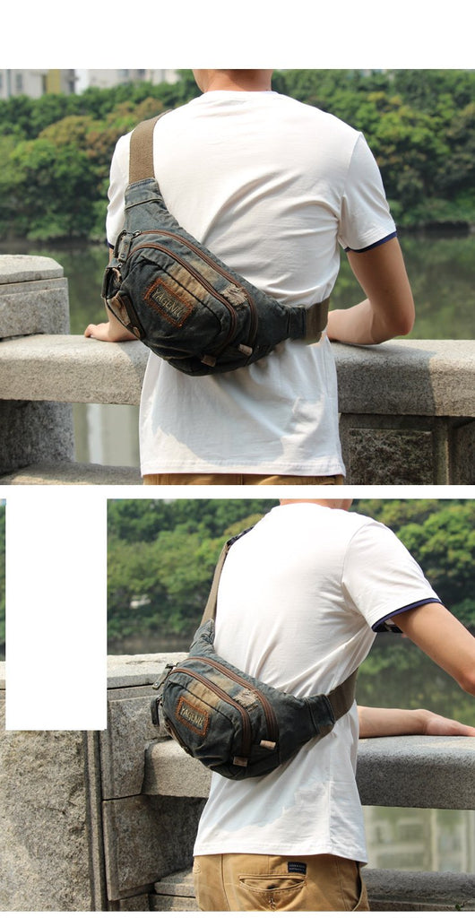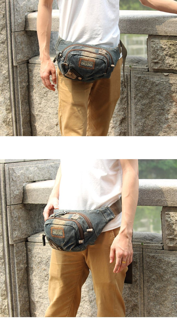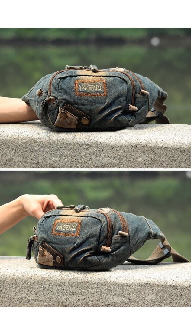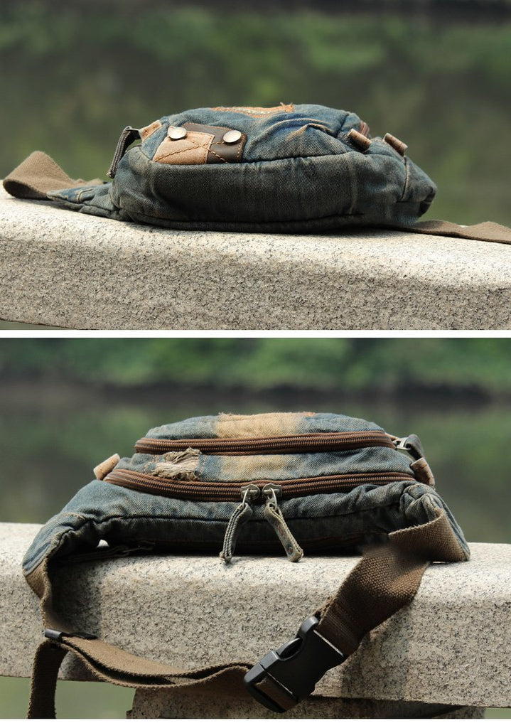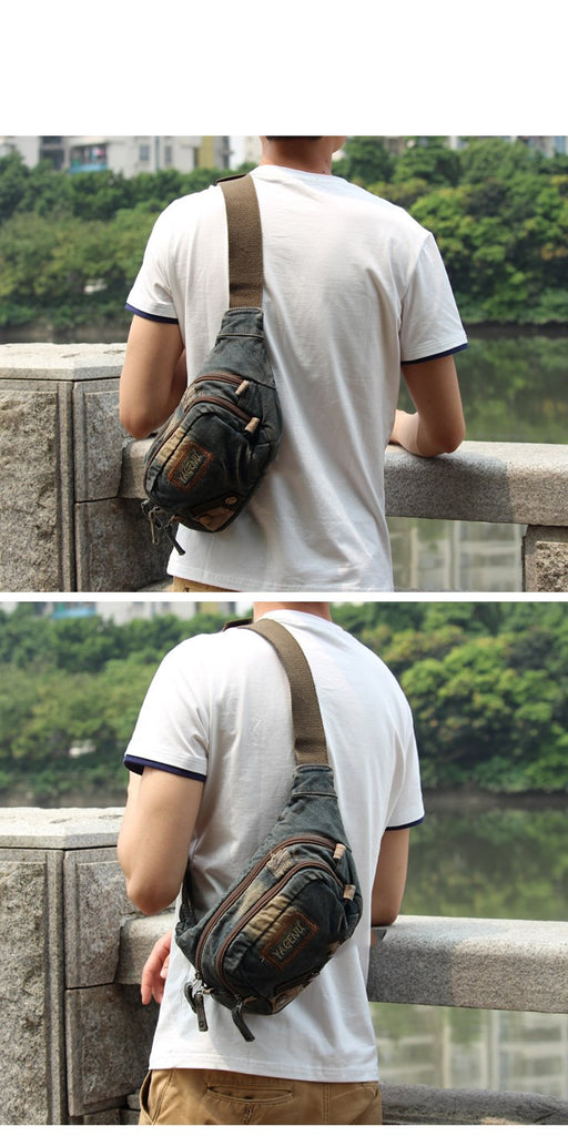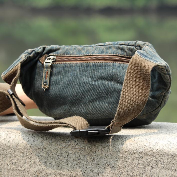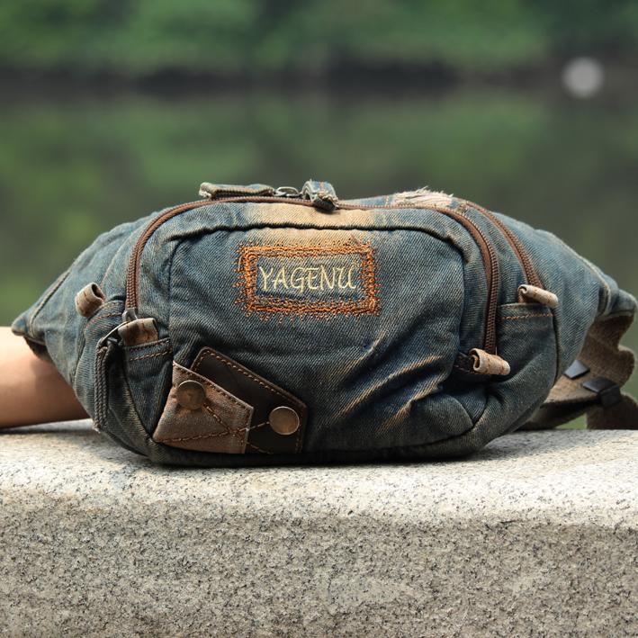 Style: Jeans Denim Blue Mens Chest Bag  Waist Bag Jeans Denim Blue Canvas Fanny Pack For Men