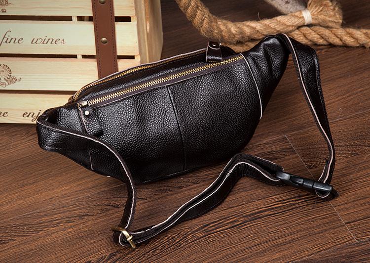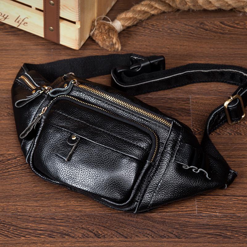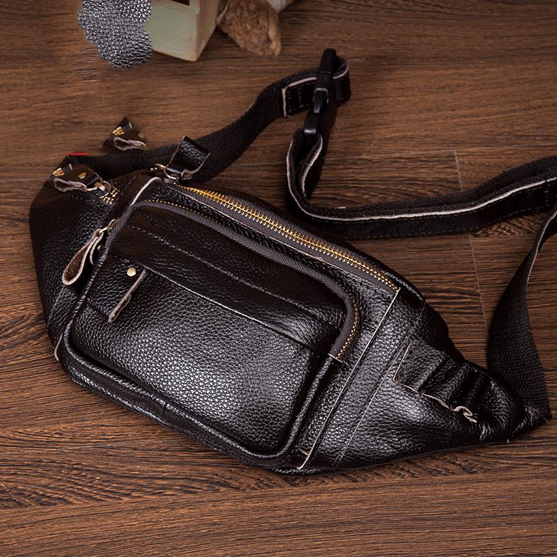 Design: Black Leather Fanny Pack Mens Waist Bag Hip Pack Belt Bag Bumbag for Men