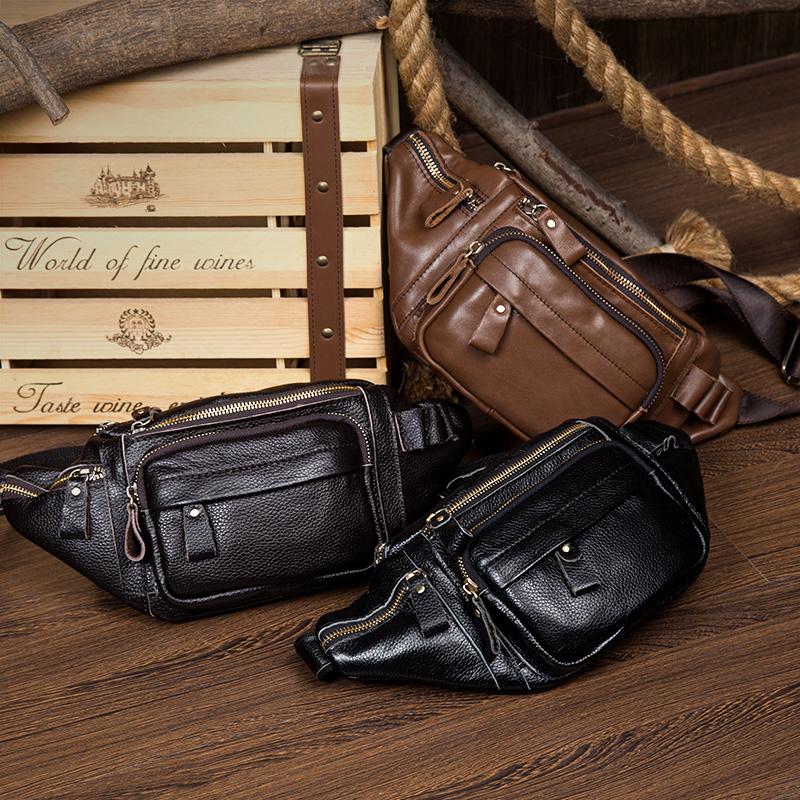 Leather Fanny Pack Mens Waist Bag Hip Pack Belt Bag Bumbag for Men