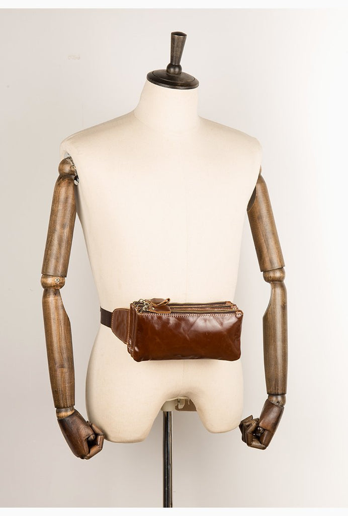 Design: Black Leather Fanny Pack Mens Waist Bag Hip Pack Belt Bag Bumbag for Men