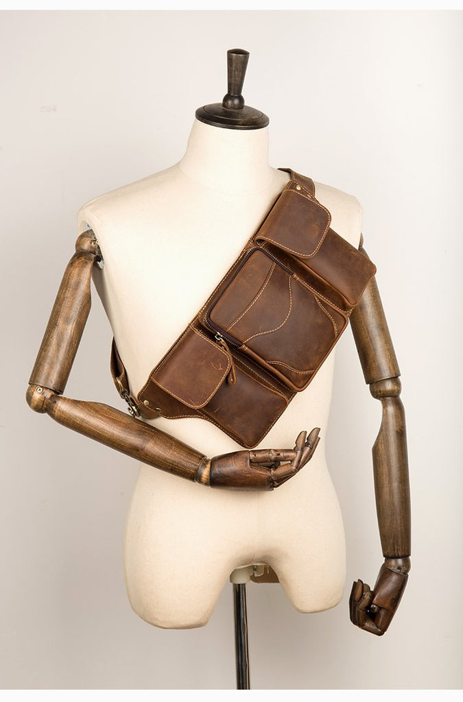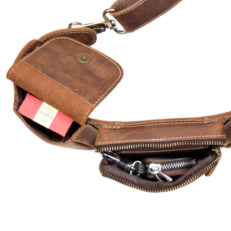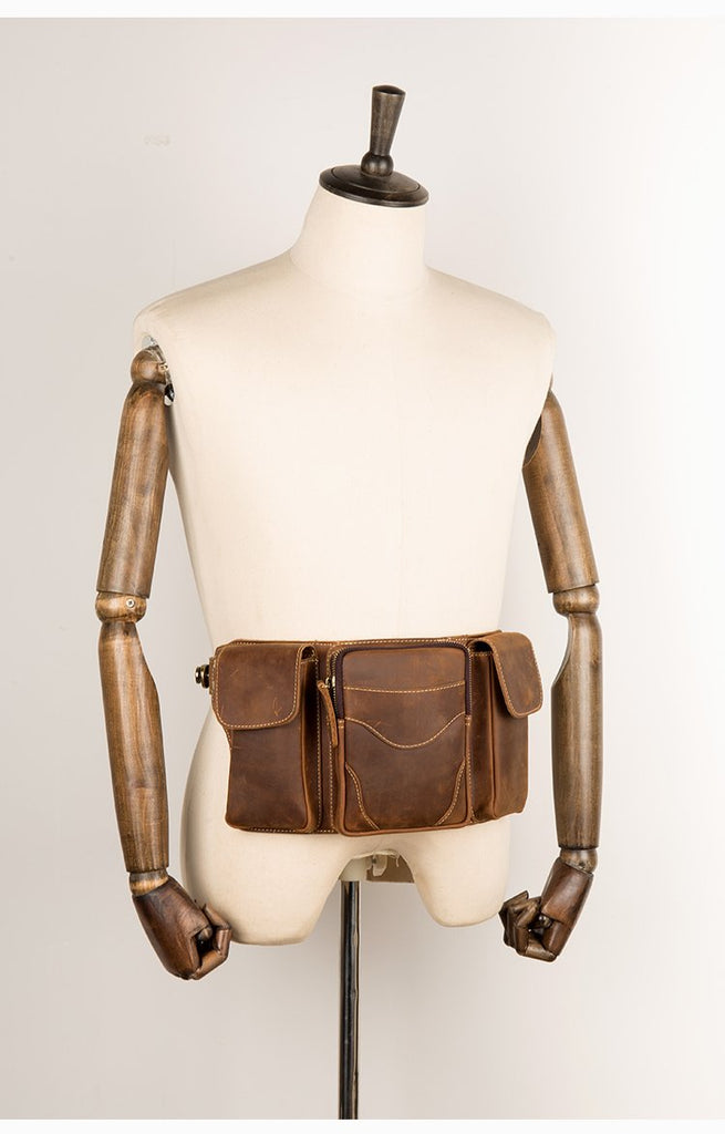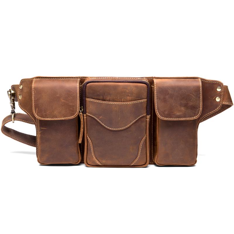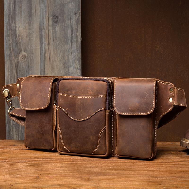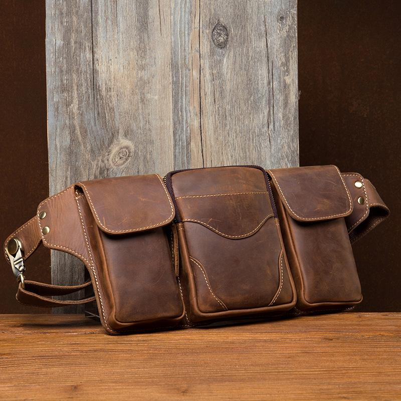 Cool Brown Leather Mens Fanny Pack Tool Waist Bags Hip Pack Belt Bag Bumbags for Men
