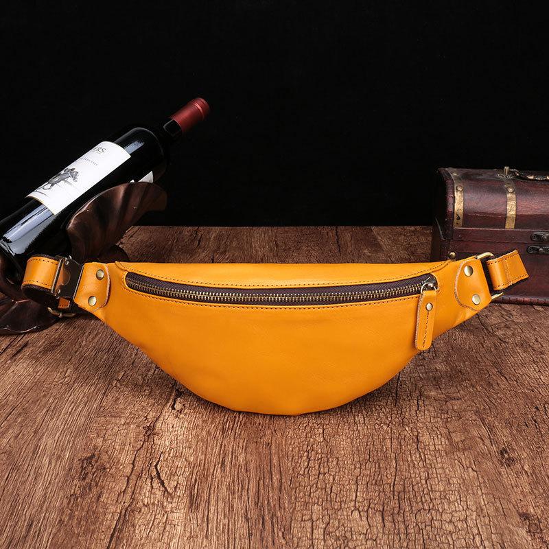 Style: Vintage Brown Leather Men's Fanny Pack Coffee Waist Bag Chest Bag For Men