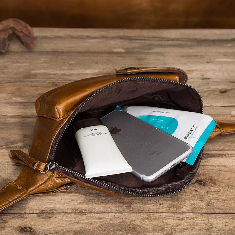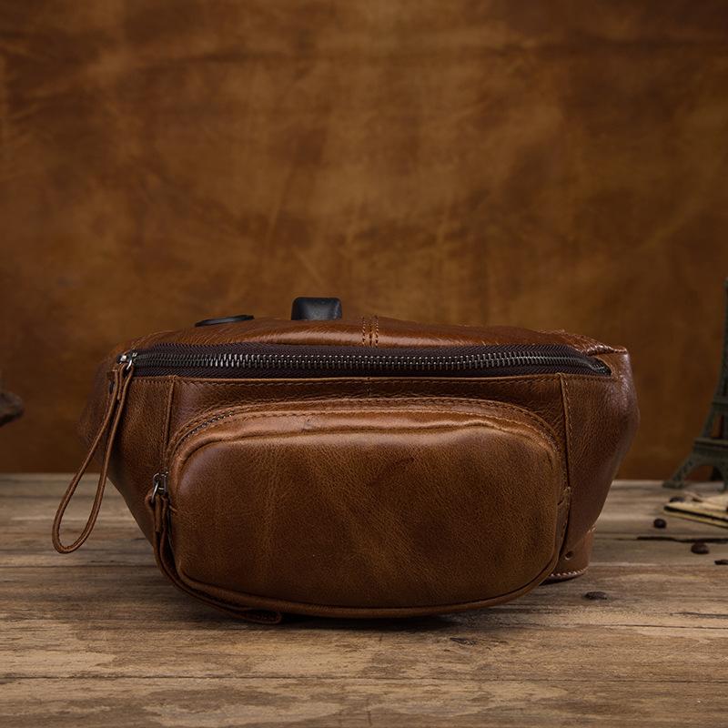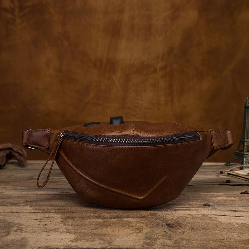 Style: Vintage Brown Leather Men's Fanny Packs Hip Pack Waist Bag For Men