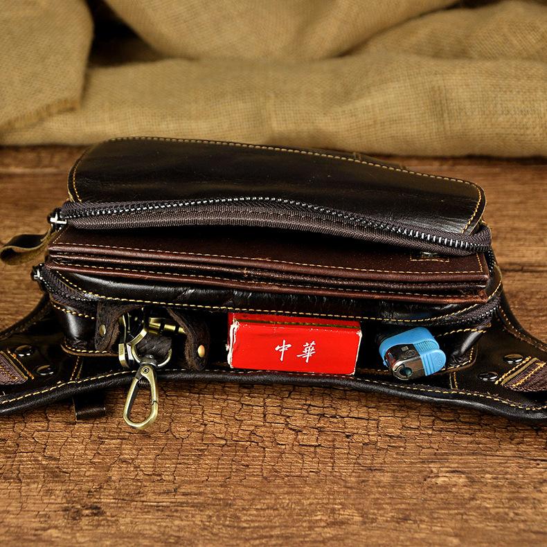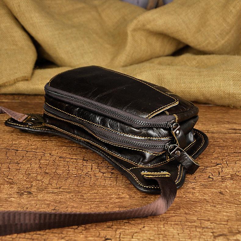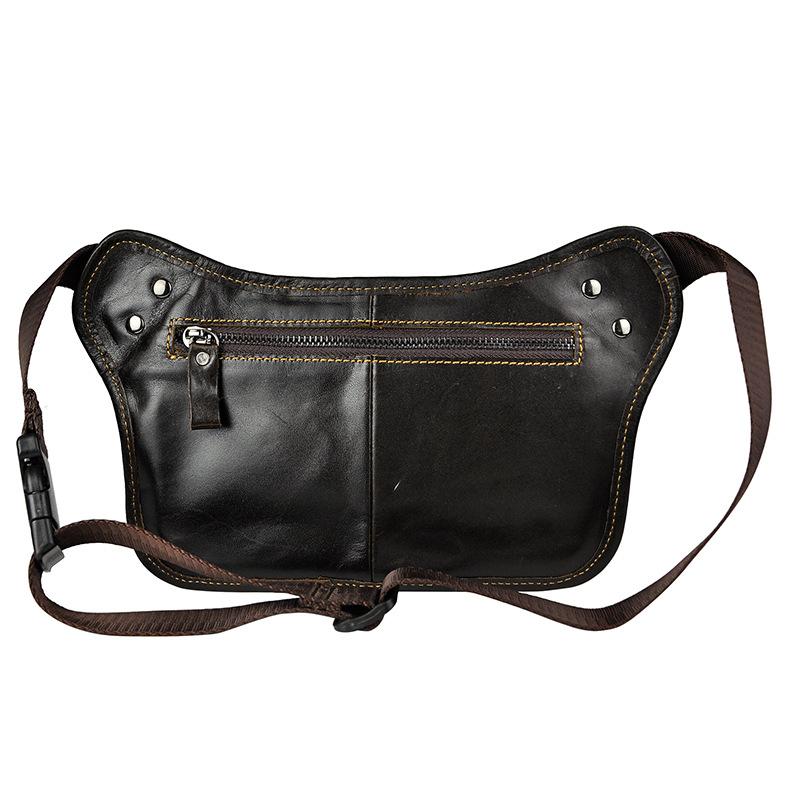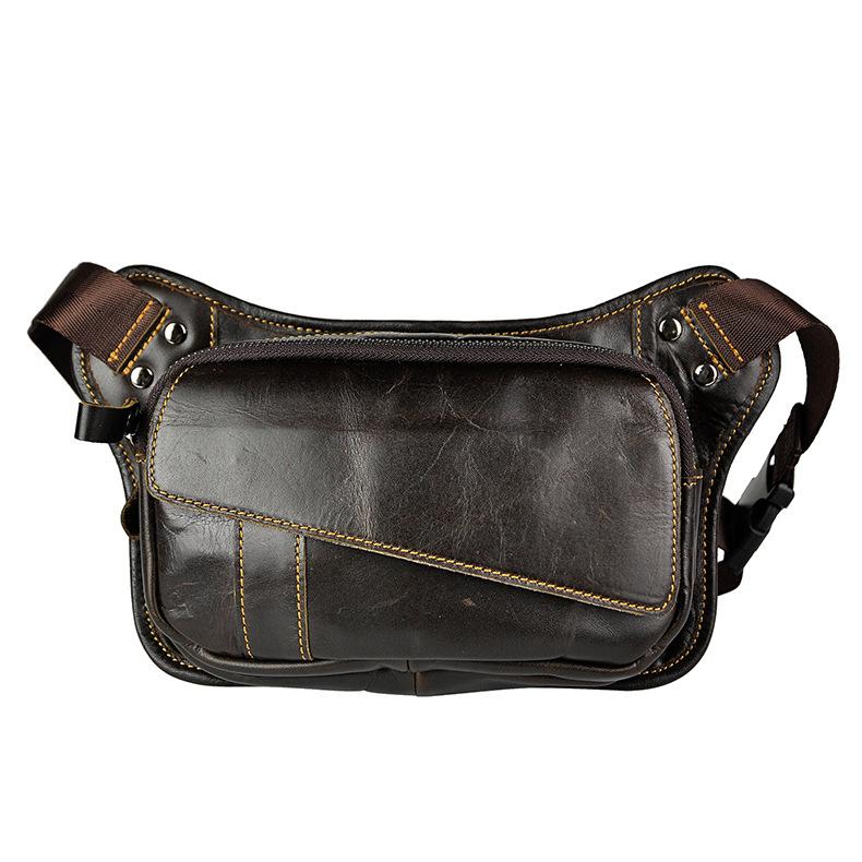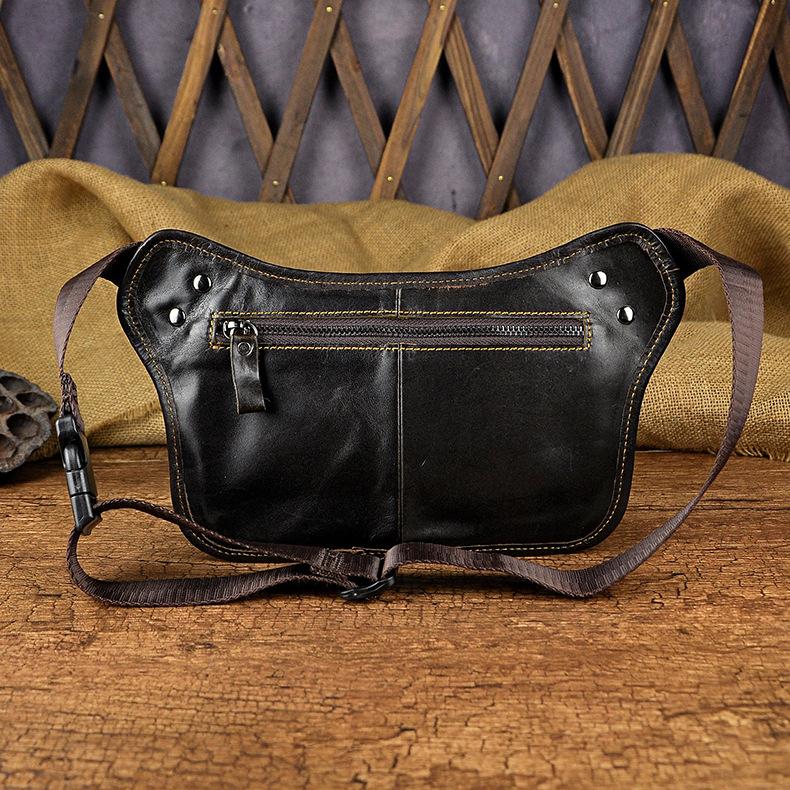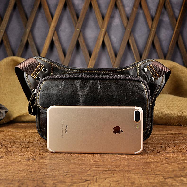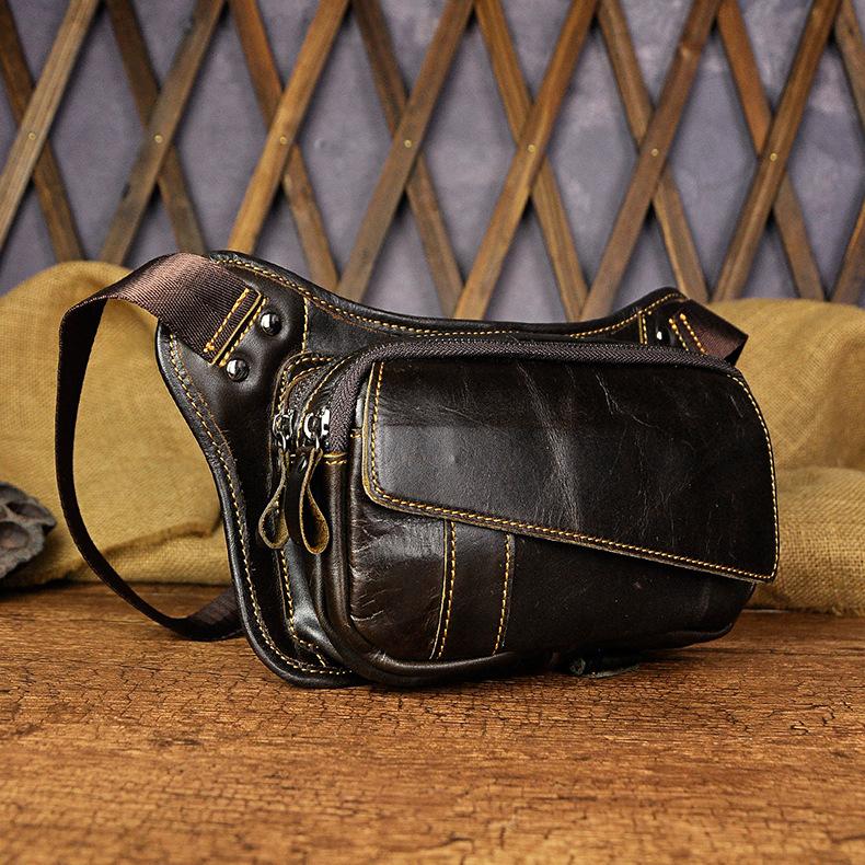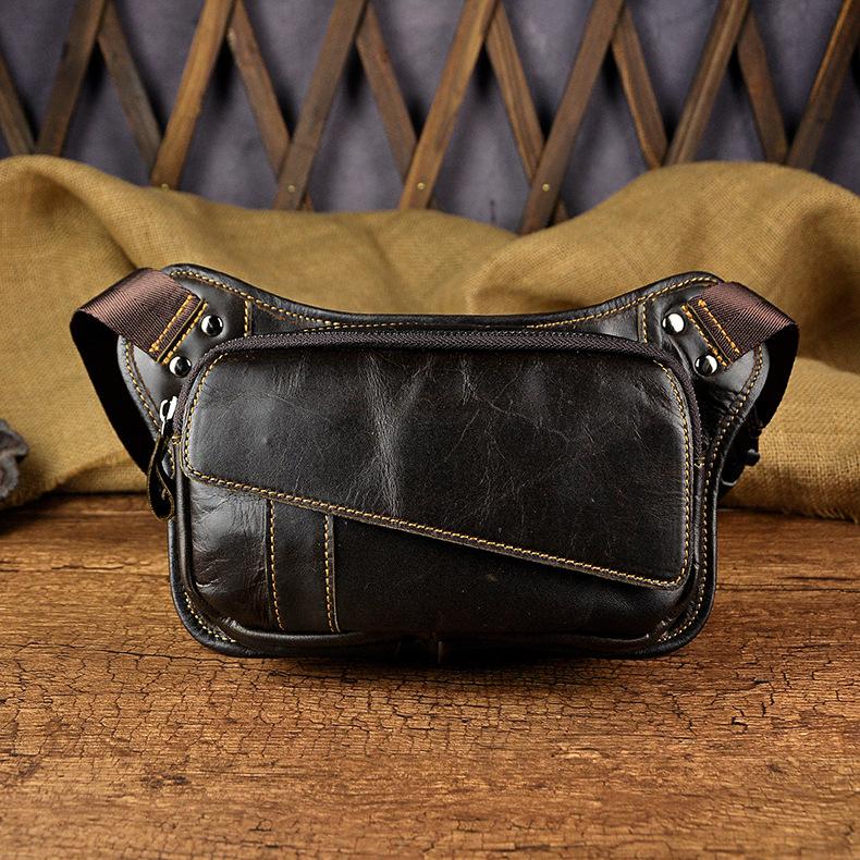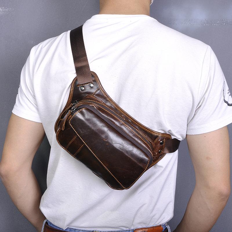 Style: Retro Brown Leather Fanny Pack Men's Black Chest Bag Hip Bag 8 inches Waist Bag For Men