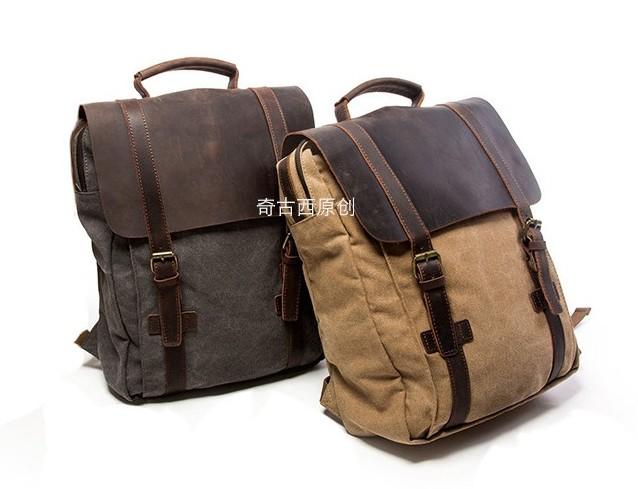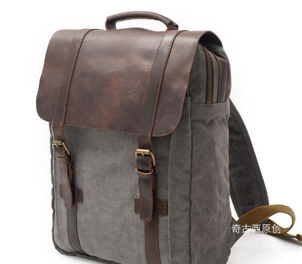 Design: Leather Canvas Mens Cool Backpack Canvas Travel Bag Canvas School Bag for Men