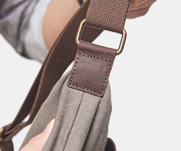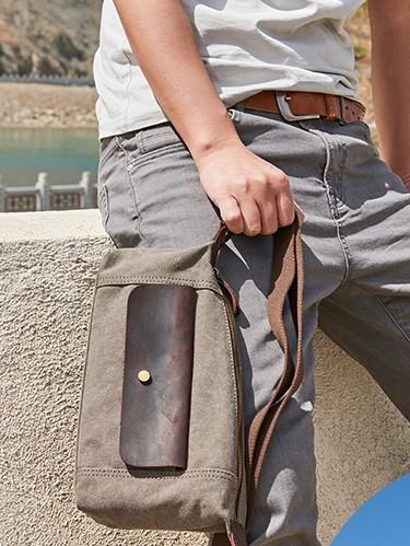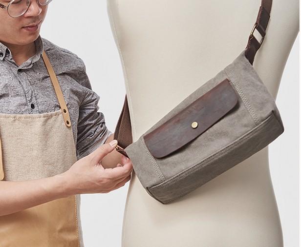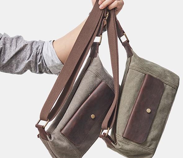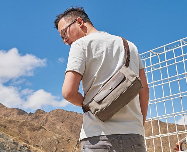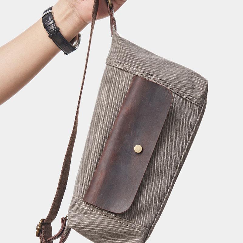 Design: Cool Canvas Leather Mens Sling Bag Chest Bag One Shoulder Pack for men