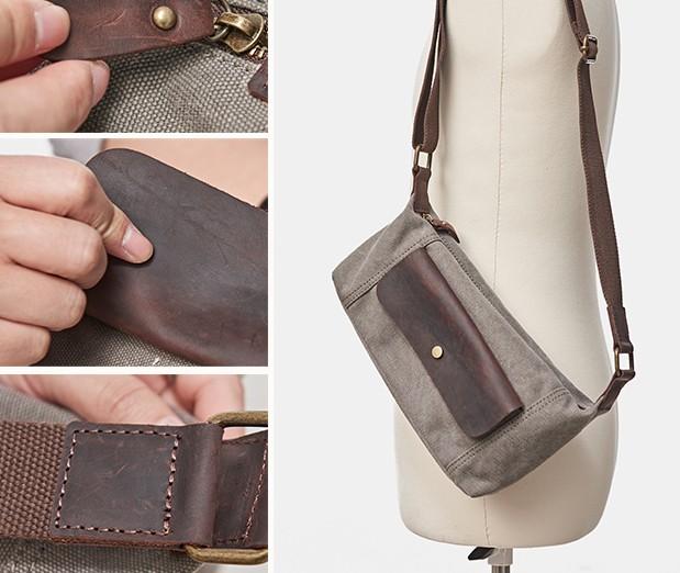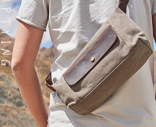 Style: Cool Canvas Leather Mens Sling Bag Chest Bag One Shoulder Pack for men