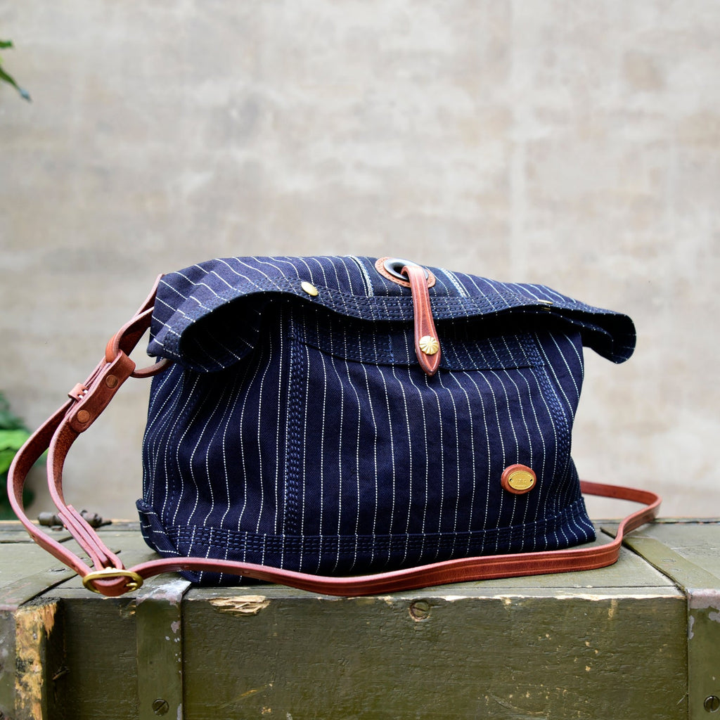 Design: Blue Striped Denim Leather Crossbody Bag for Men Womens Jeans Shoulder Bag Striped Messenger Bag