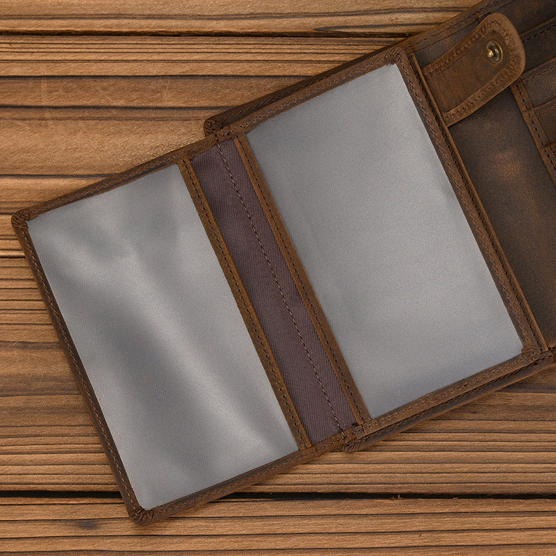 Leather Vertical Bifold Wallet with Buckle | Vintage Crazy Horse Leather Organizer