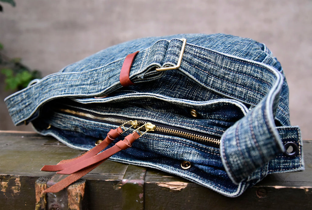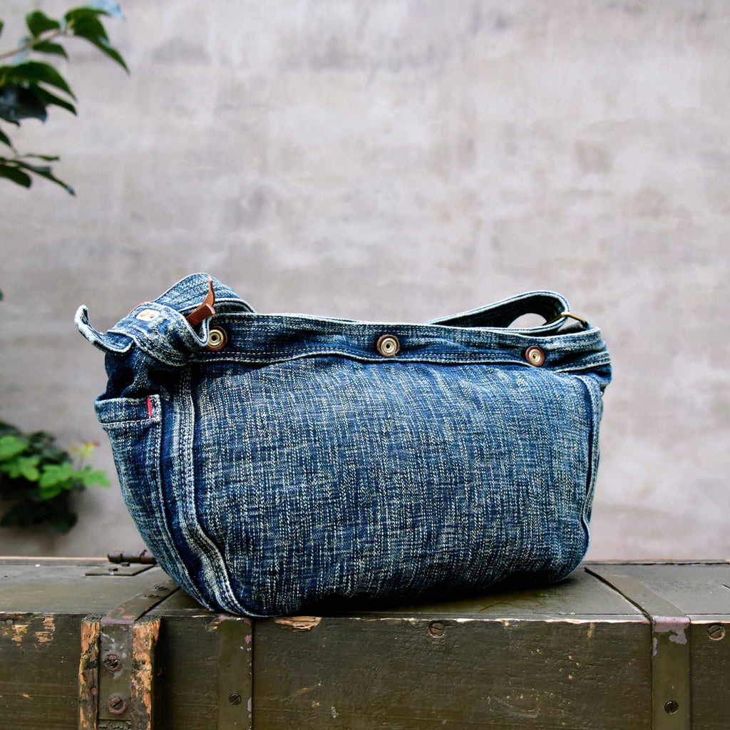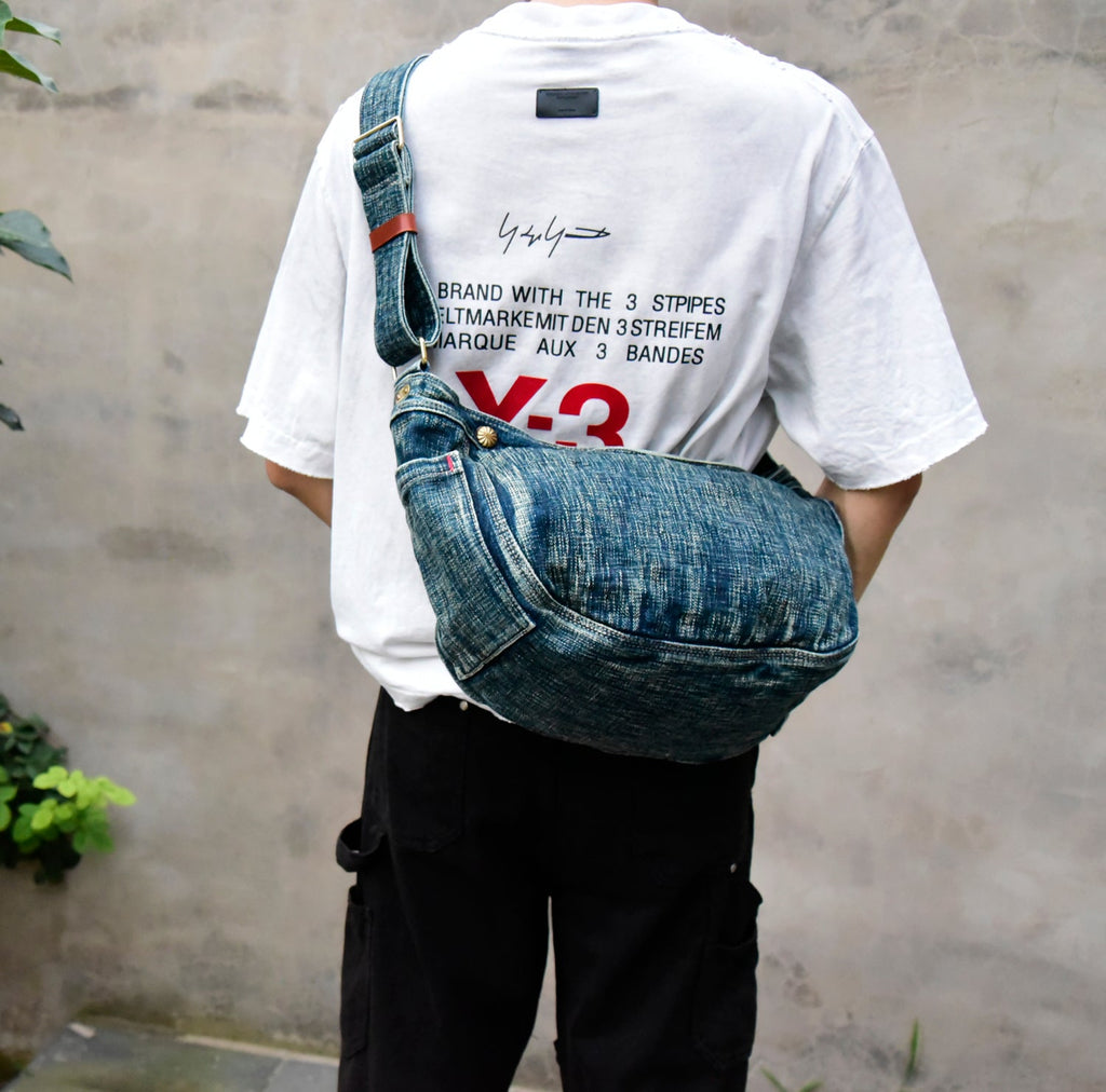 Design: Large Denim Crossbody Bag for Men Washed Distressed Womens Large Jeans Shoulder Bag Blue Denim Messenger Bag