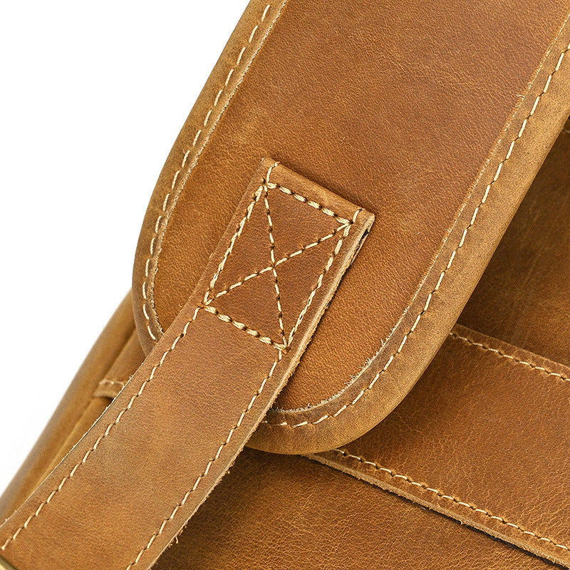 Large Tan Leather Backpack for Men Camel Crazy Horse Leather Backpack Mens