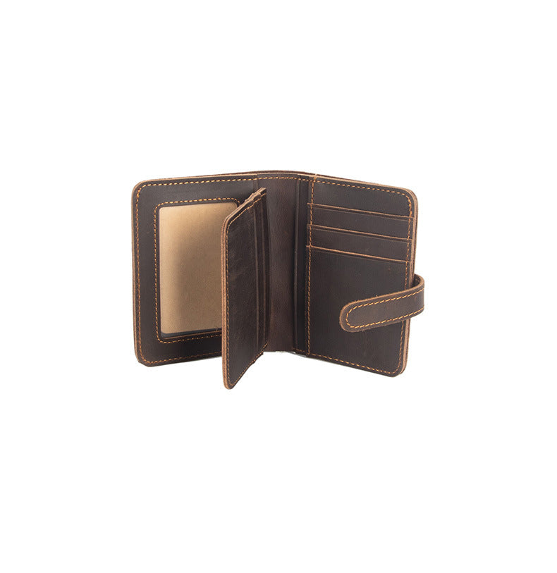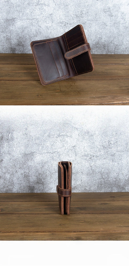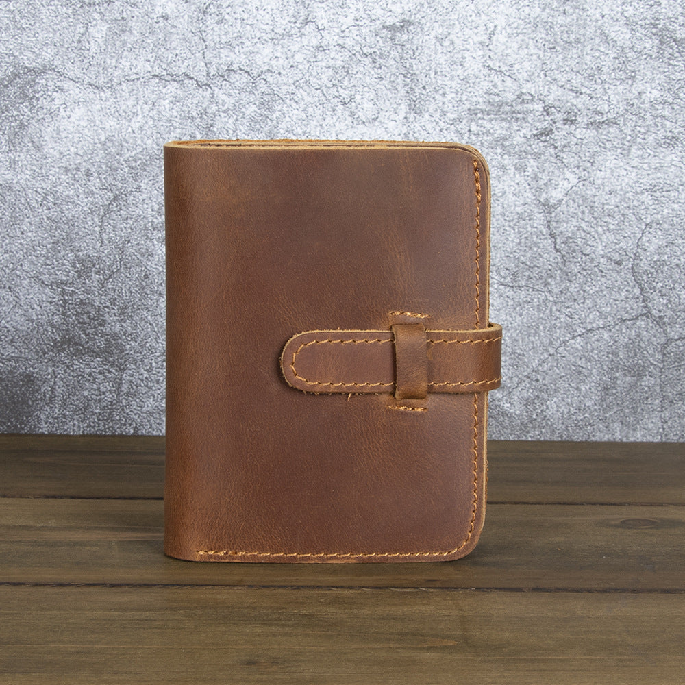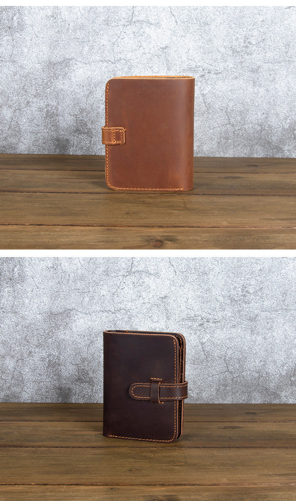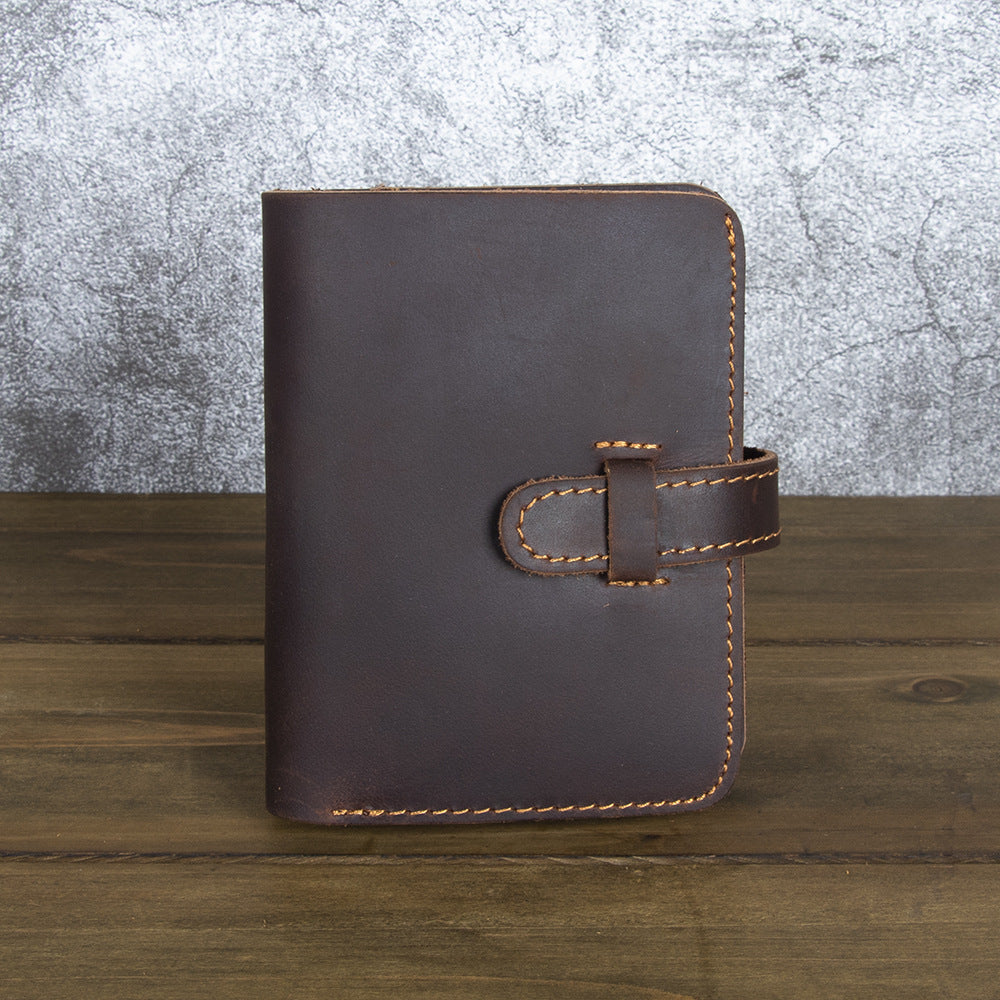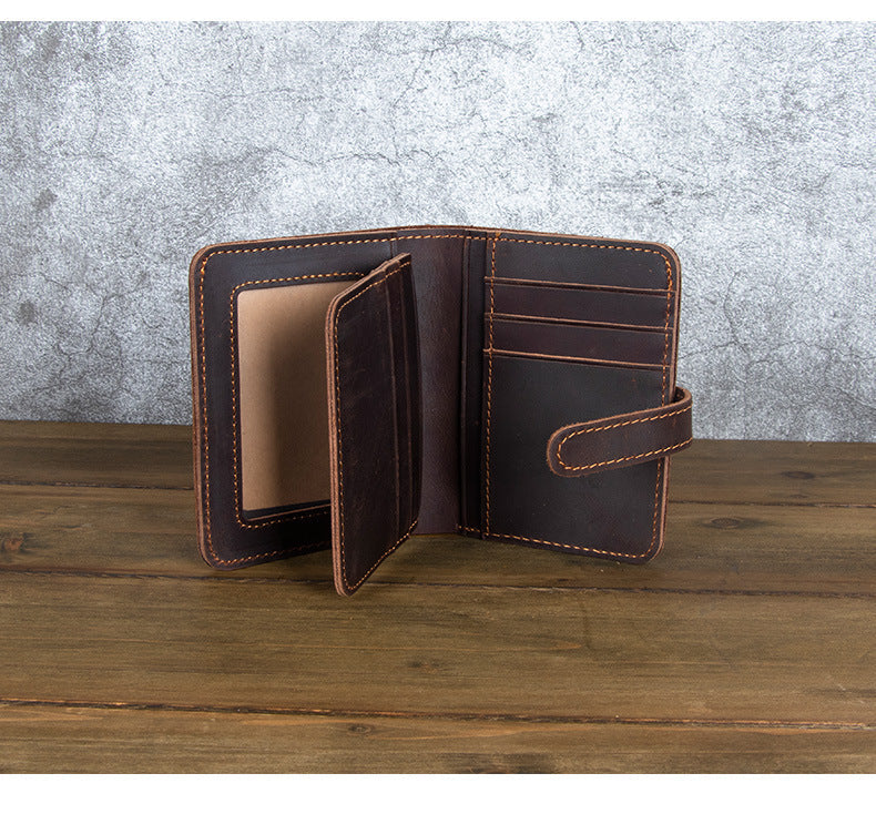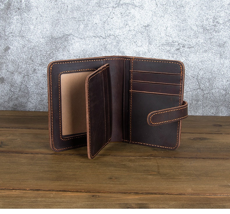 Leather Vertical Bifold Wallet with Buckle - Vintage Crazy Horse Leather