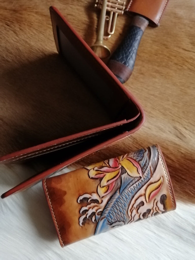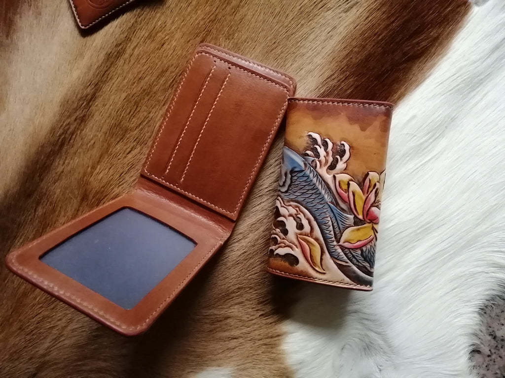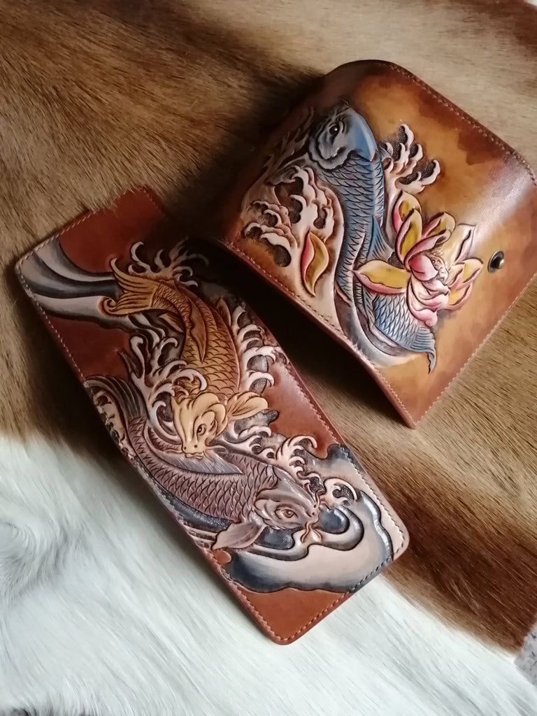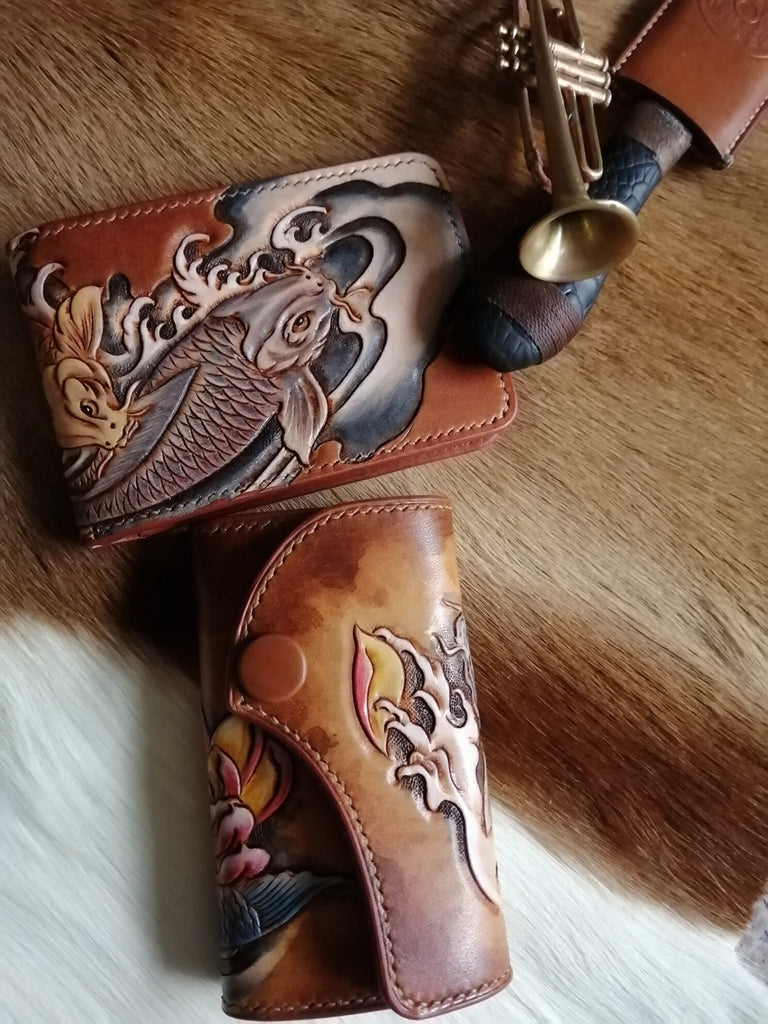 Style: Tooled Leather Key Wallet Key Holders with Card Holder Carp Leather Key Wallets