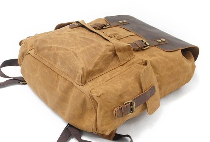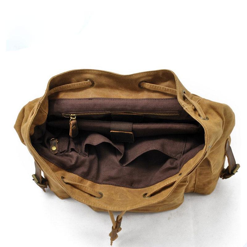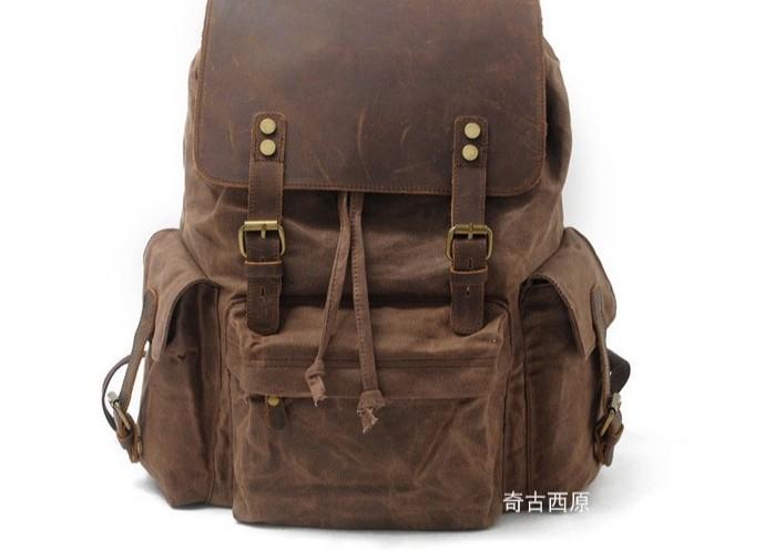 Design: Waxed Canvas Leather Mens Hiking Backpacks Canvas Travel Backpack School Backpack for Men