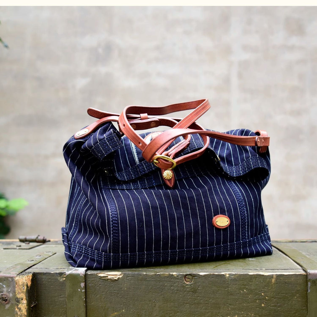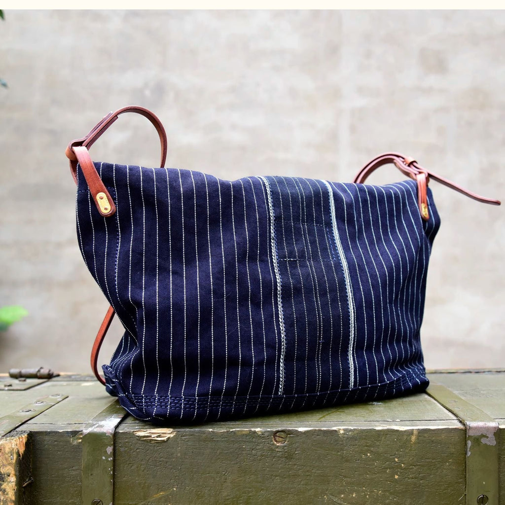 Design: Womens Jeans Shoulder Bag Blue Striped Denim Leather Crossbody Bag for Men Striped Medium Messenger Bag