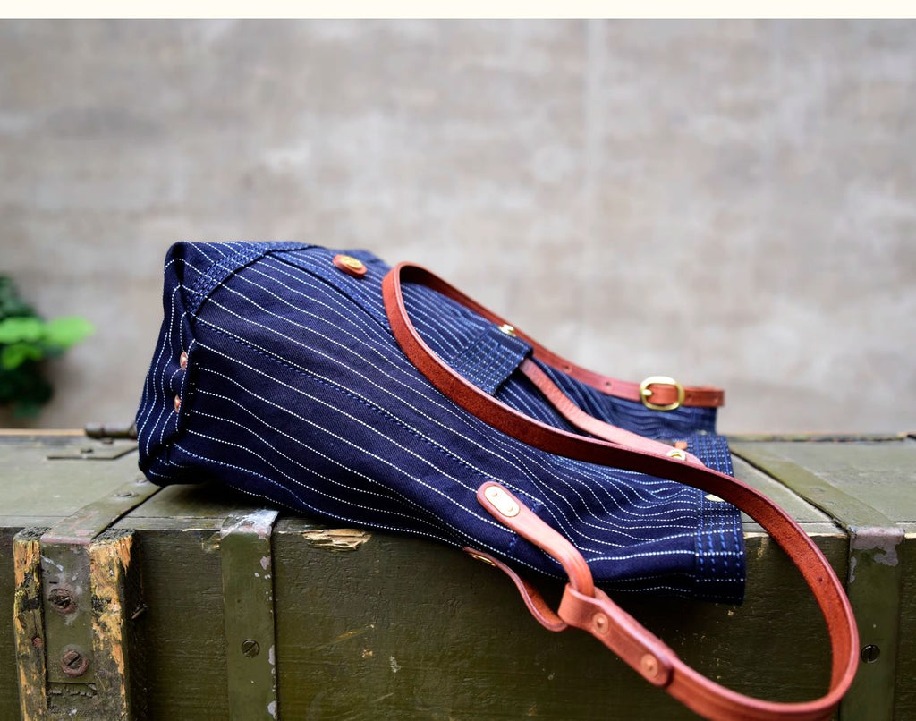 Style: Womens Jeans Shoulder Bag Blue Striped Denim Leather Crossbody Bag for Men Striped Medium Messenger Bag