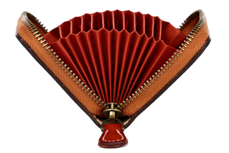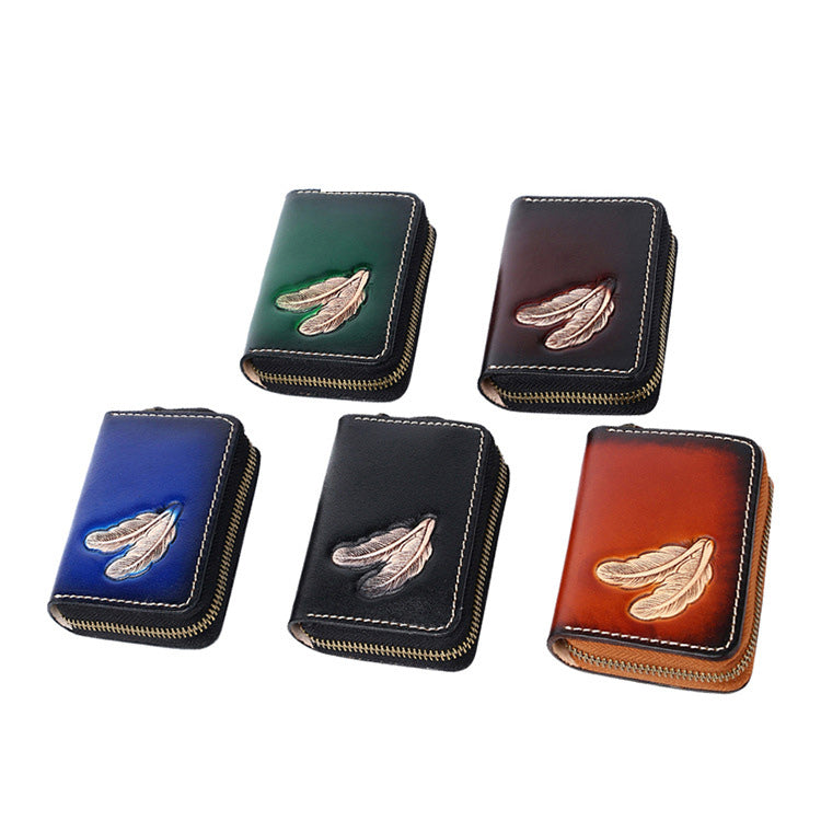 Style: Around Zip Brown Tooled Leather Card Wallet Mens Feather Zipper Card Holder for Men