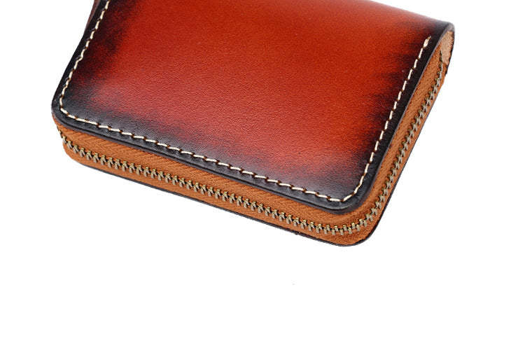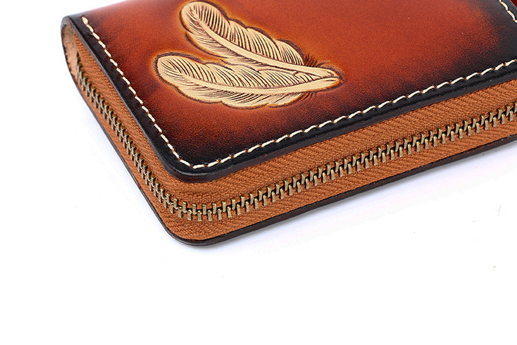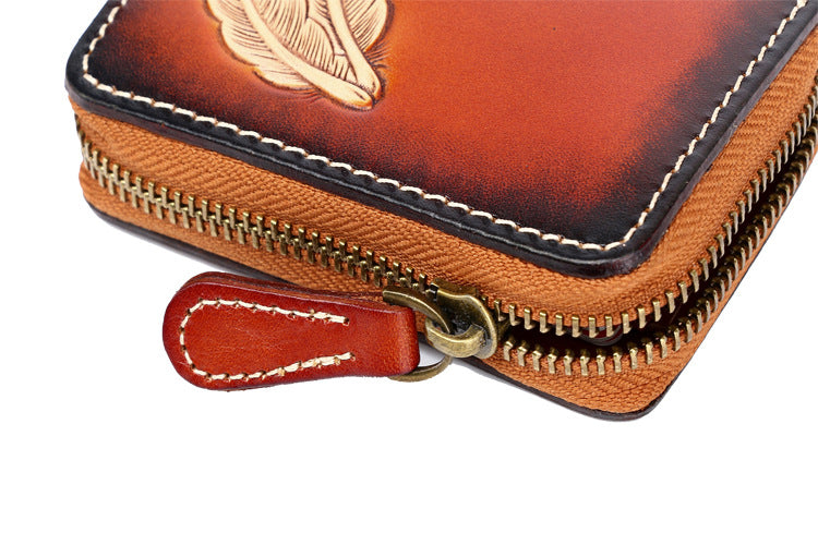 Design: Around Zip Tooled Leather Card Wallet Mens Feather Zipper Card Holder for Men