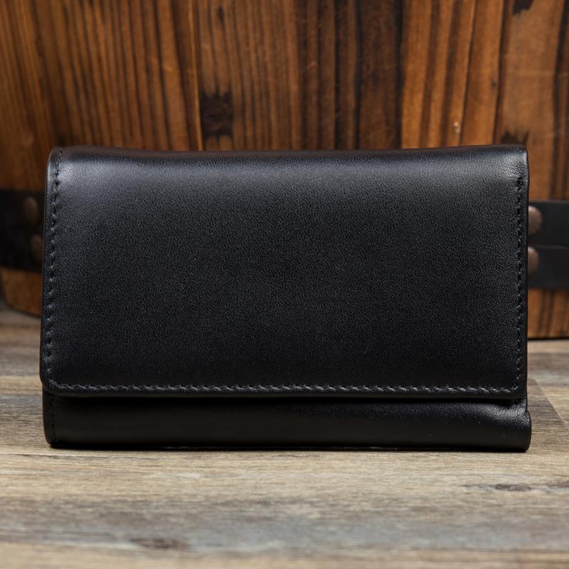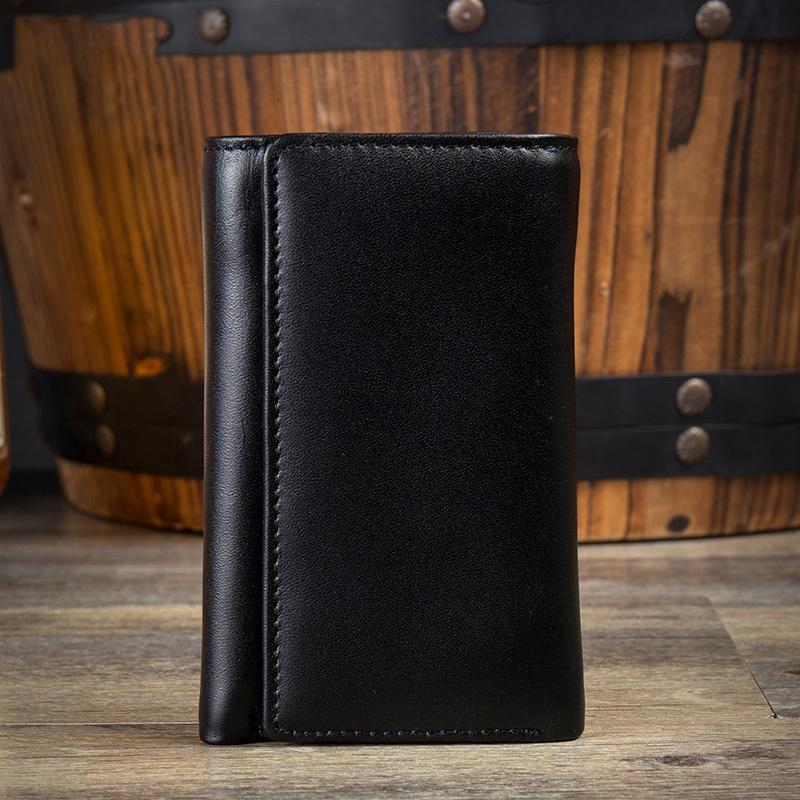 Design: Black Cool Leather Mens Card Holder Trifold Key Wallet Multifunction billfold Wallet For Men