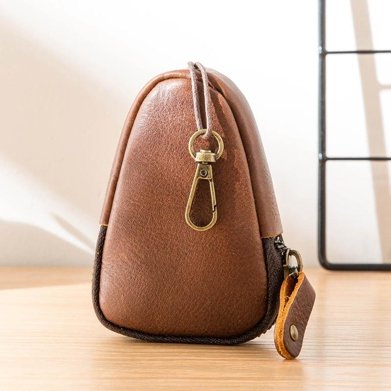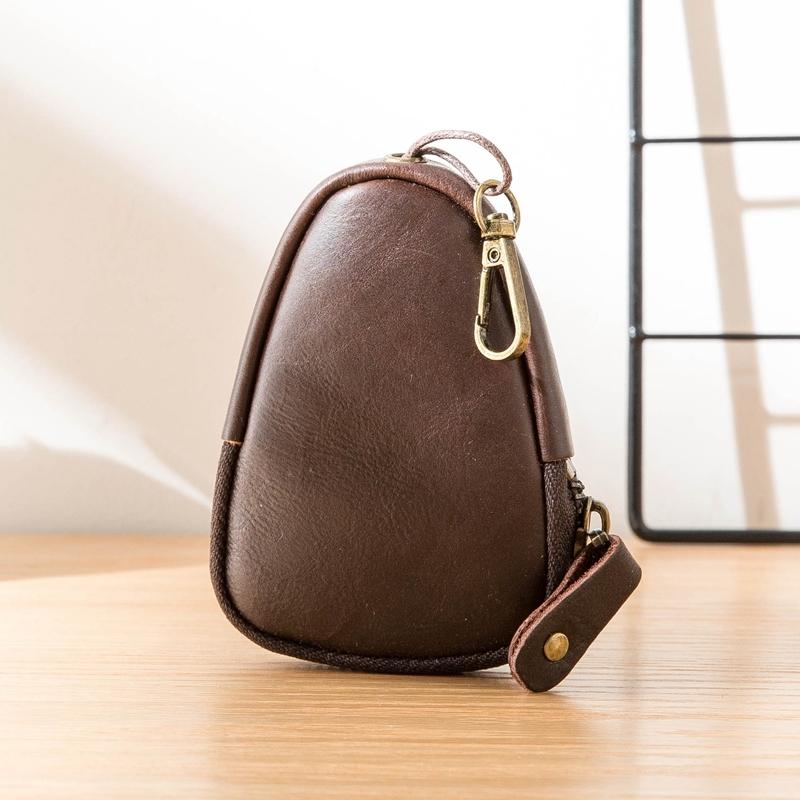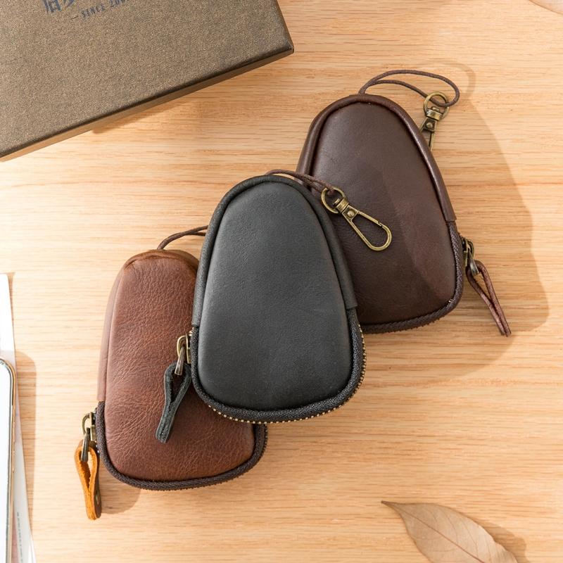 Design: Black Handmade Leather Mens Brown Small Wallets Car Key Wallet Dark Brown Coin Purse For Men
