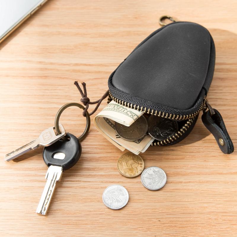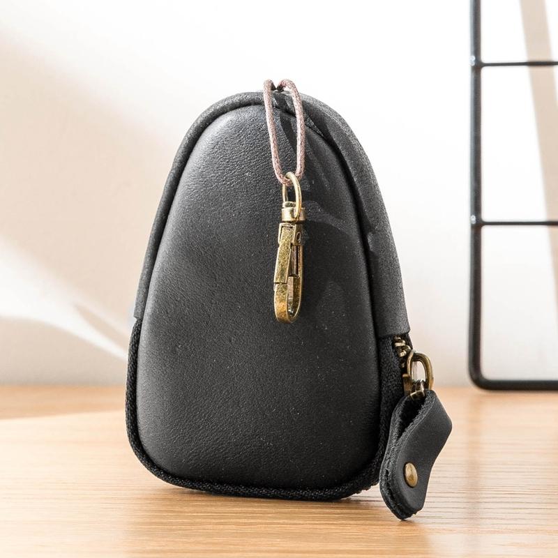 Style: Black Handmade Leather Mens Brown Small Wallets Car Key Wallet Dark Brown Coin Purse For Men