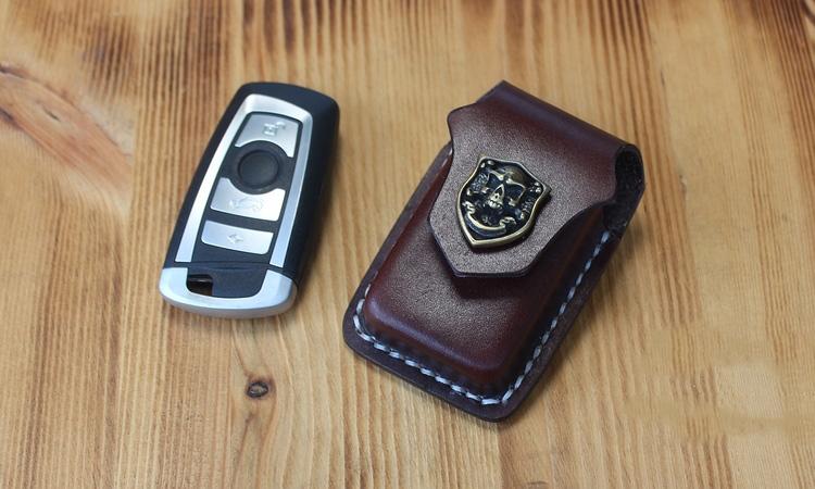 Handmade Black Leather Mens Car Key Case Brown Car Key Holder with Belt Loop/Belt Clip