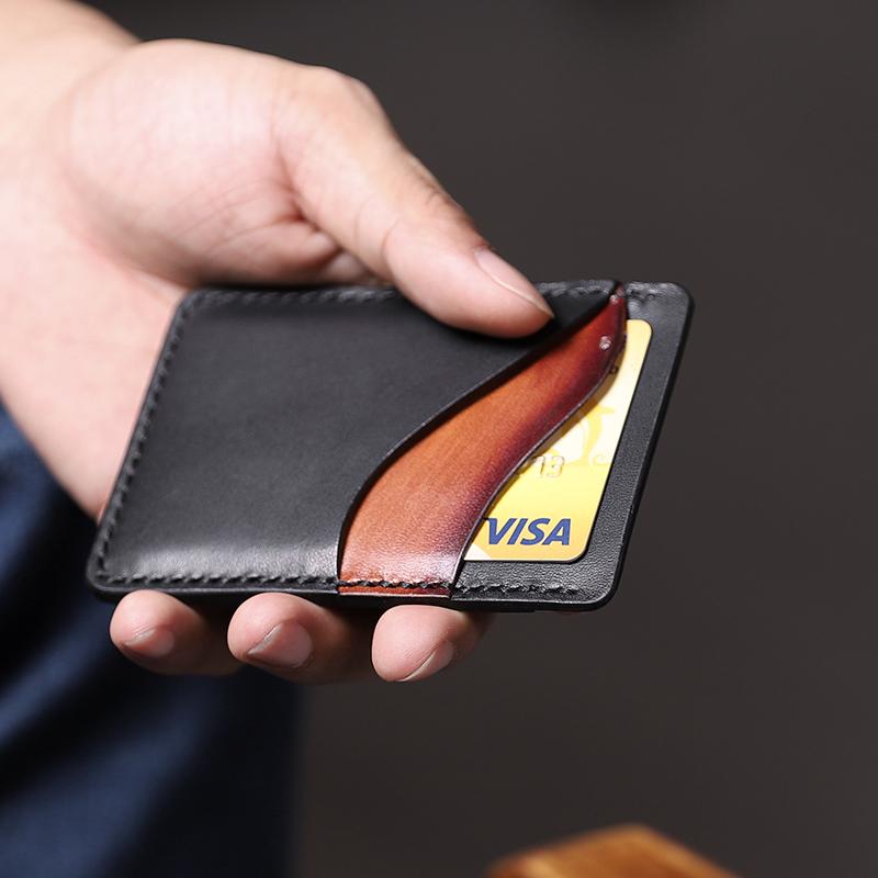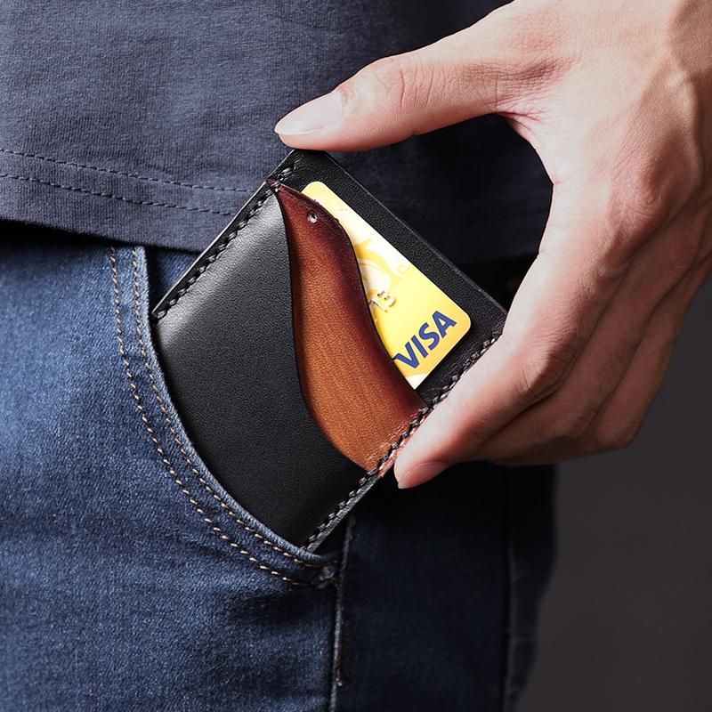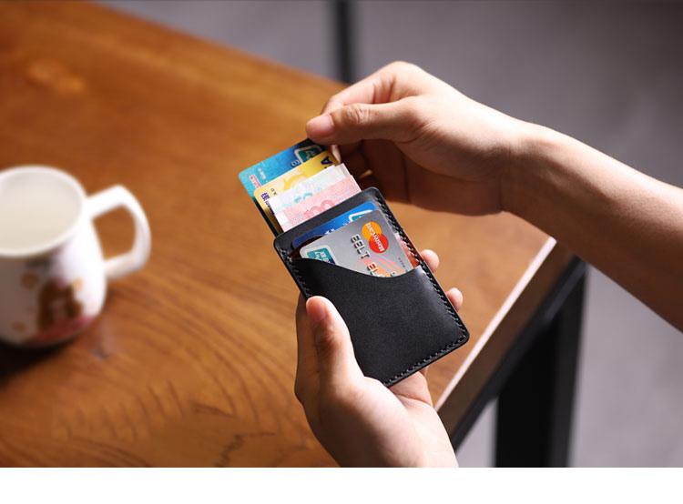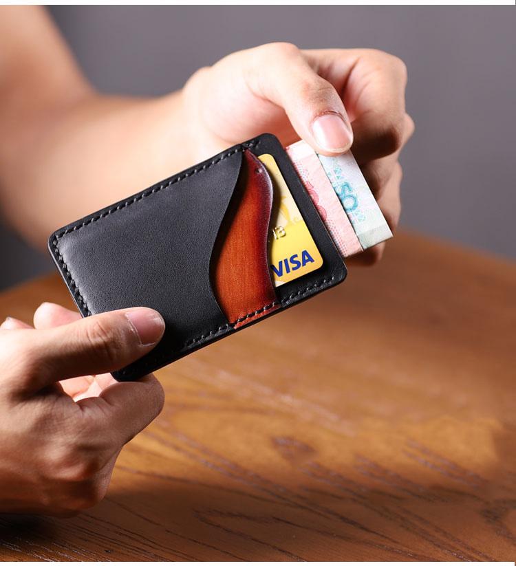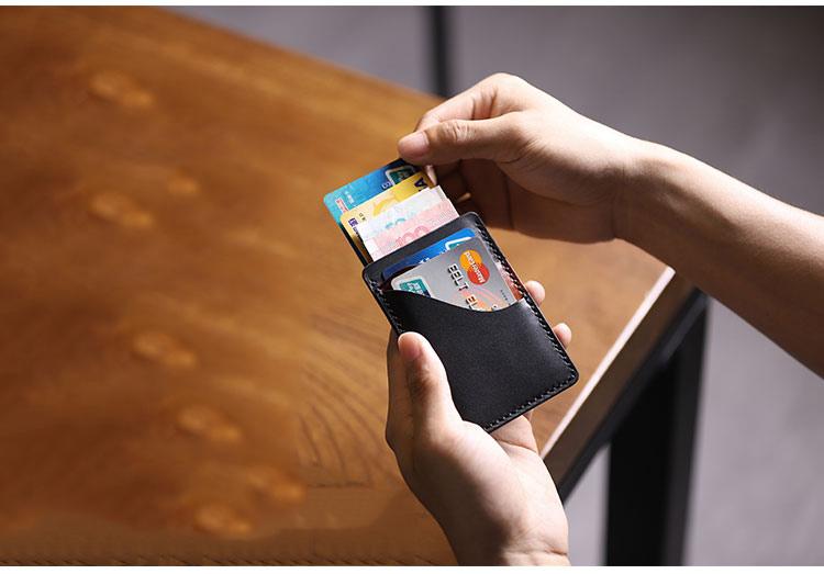 Design: Black Leather Mens Front Pocket Wallet Personalized Slim Card Wallets for Men
