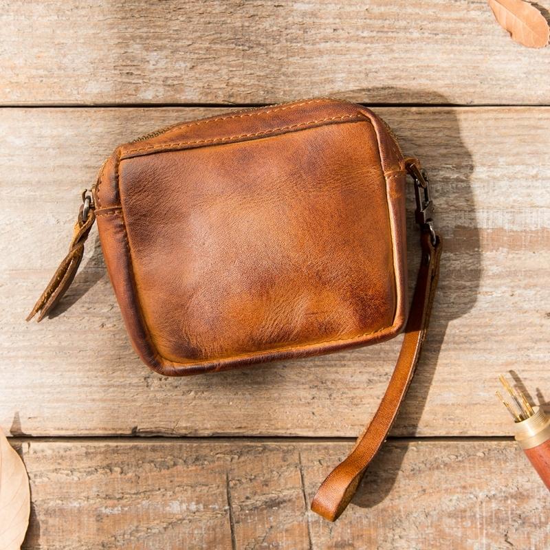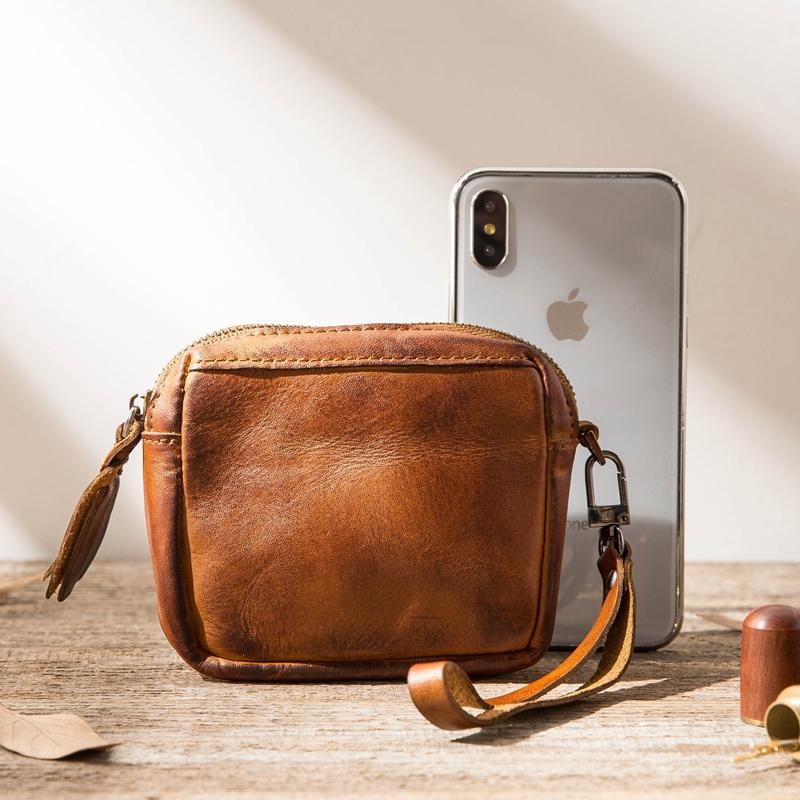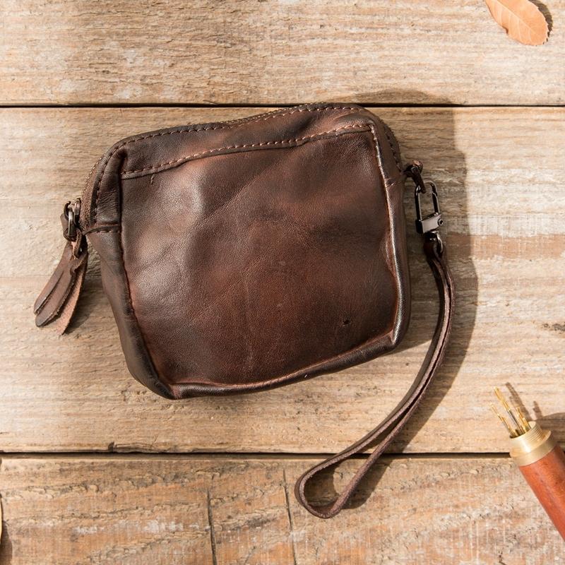 Design: Black Leather Mens Small Key Case Dark Brown Key Holder Coin Purse Card Holder For Men