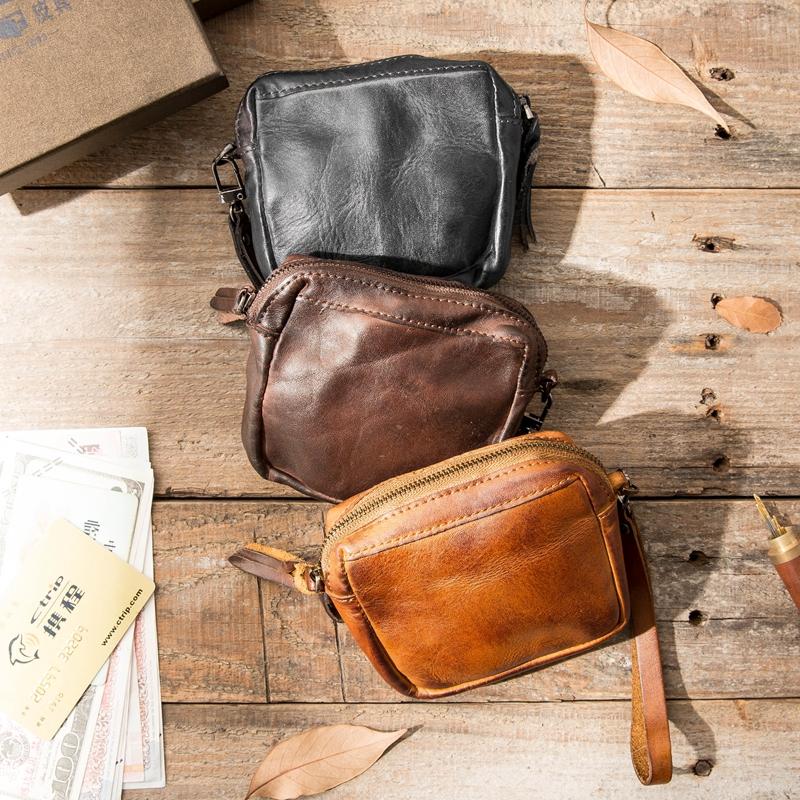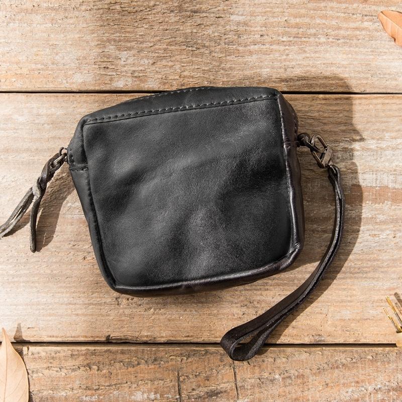 Style: Black Leather Mens Small Key Case Dark Brown Key Holder Coin Purse Card Holder For Men