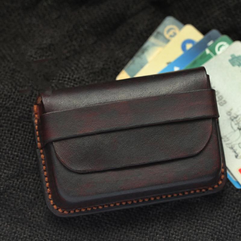 Design: Cool Chocolate Leather Mens Business Card Holder Coin Purse Small Wallet For Men