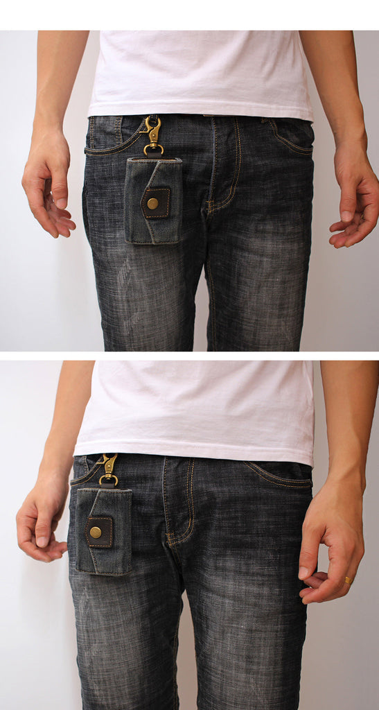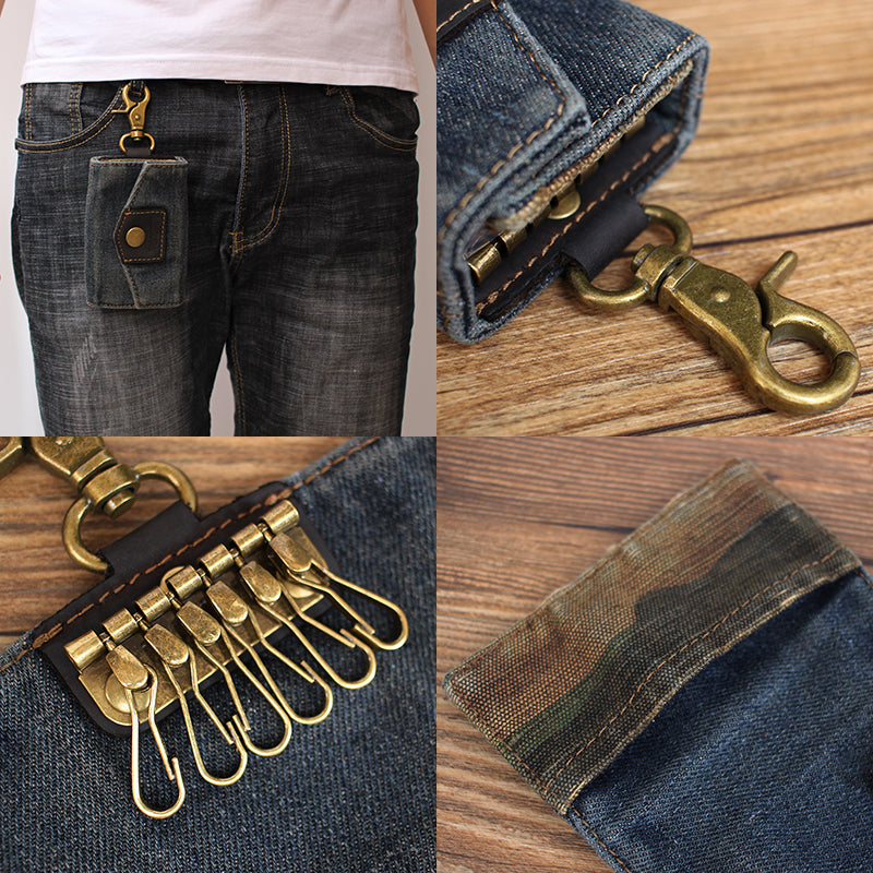 Style: Cool Denim Mens Keys Wallet Denim Key Holders With Belt Clip for Women