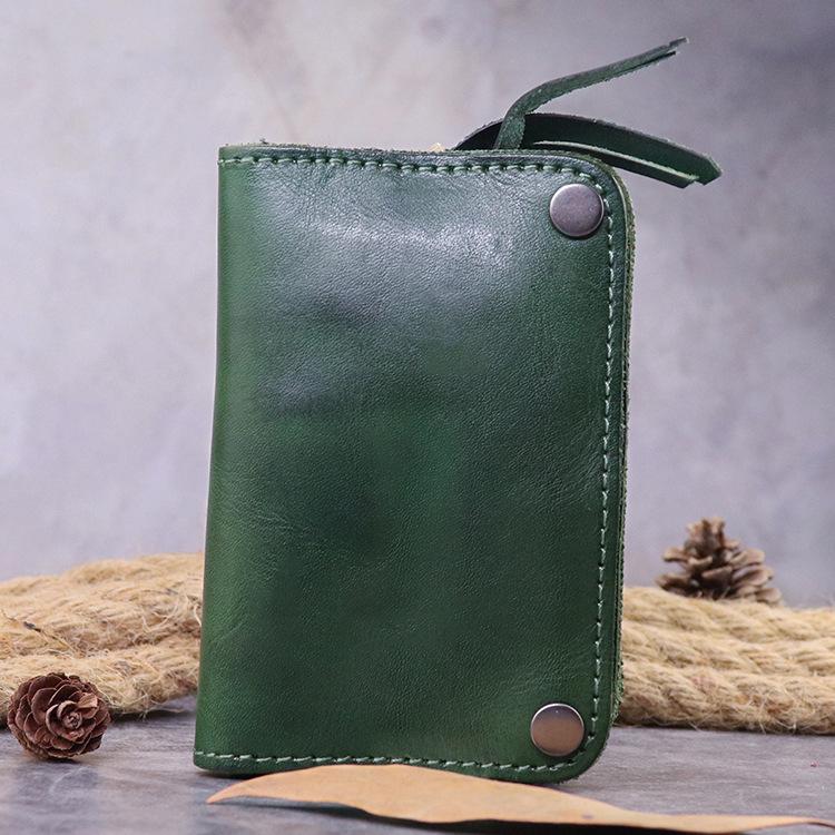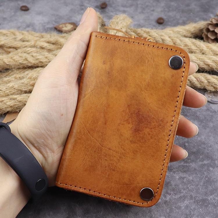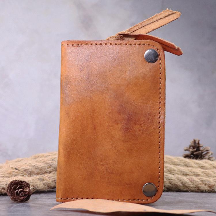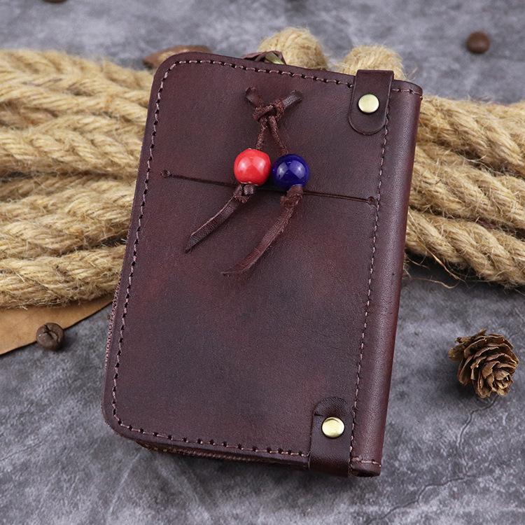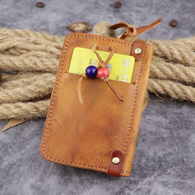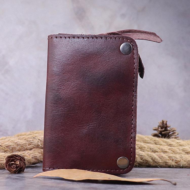 Style: Cool Handmade Brown Leather Men's Dark Brown Key Case Key Holder Red Card Holder For Men