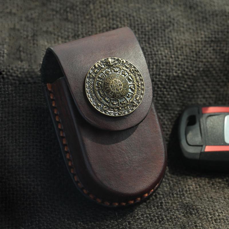 Design: Cool Handmade Brown Leather Mens Waist Hanging Car Key Case Car Key Cover For Men