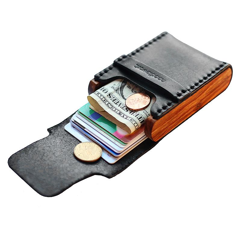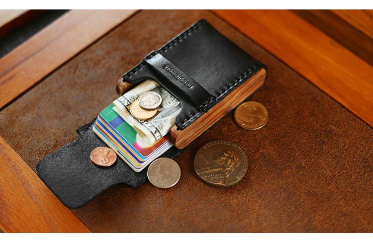 Design: Cool Wooden Leather Mens Wallet Small Card Holder Coin Wallet for Men