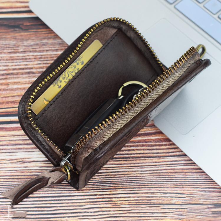 Style: Vintage Embossed Brown Leather Men's Key Wallet Black Key Case Car Car Key Holder For Men