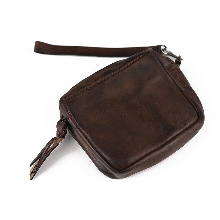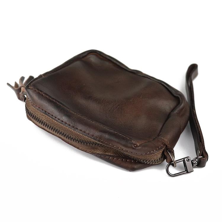 Style: Vintage Leather Brown Men's Coin Wallet Black Wristlet Change Wallet Card Holder For Men