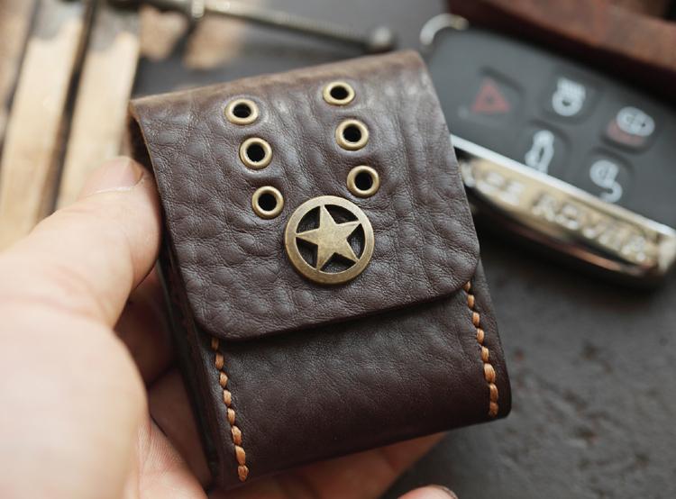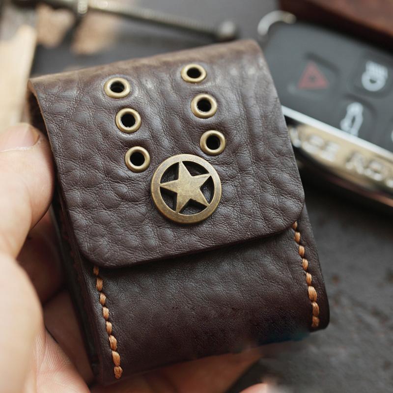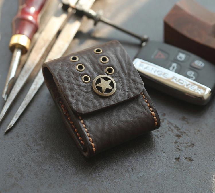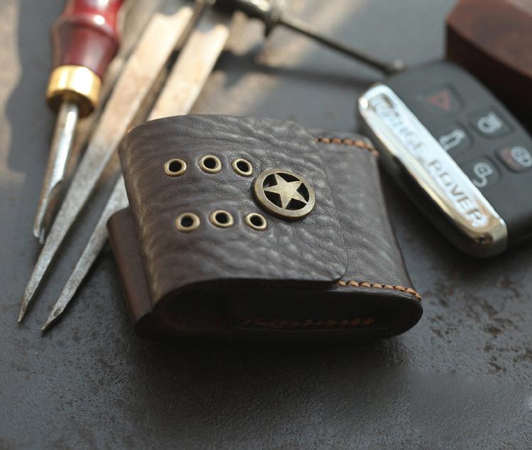 Style: Dark Brown Handmade Leather Mens Black Car Key Holder Car Key Case with Belt Loop For Men