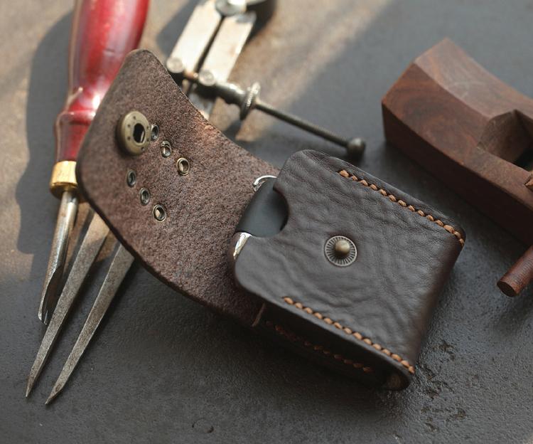 Design: Dark Brown Handmade Leather Mens Black Car Key Holder Car Key Case with Belt Loop For Men