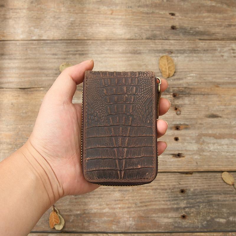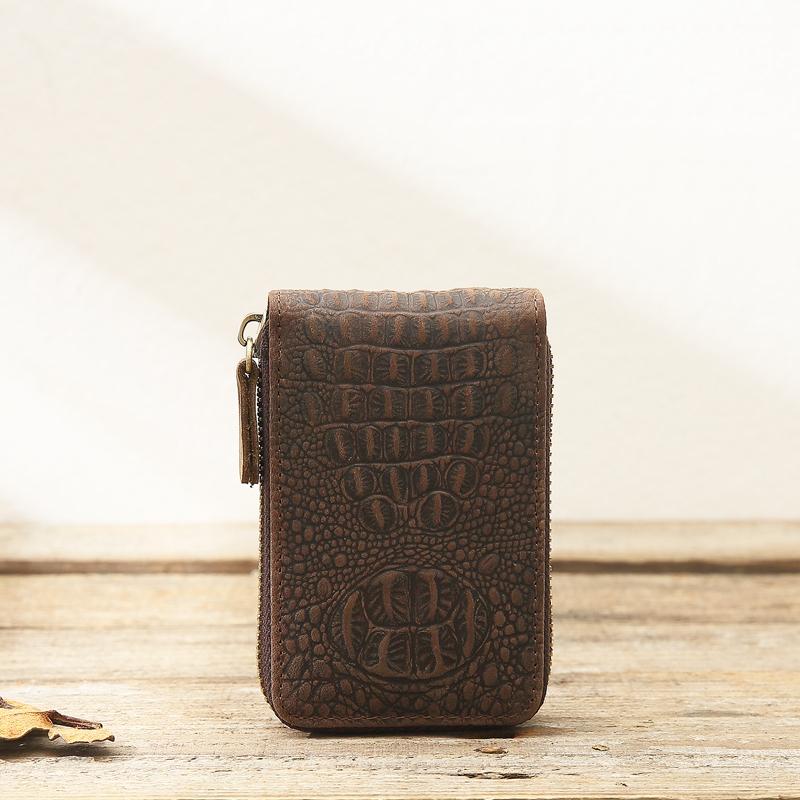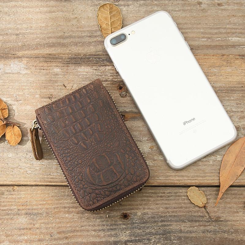 Design: Dark Brown Leather Mens Small Card Wallet Dark Brown billfold Wallet Coin Purse For Menen