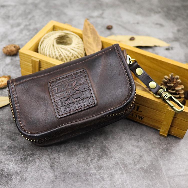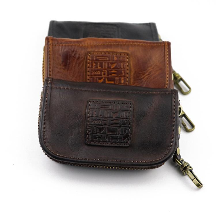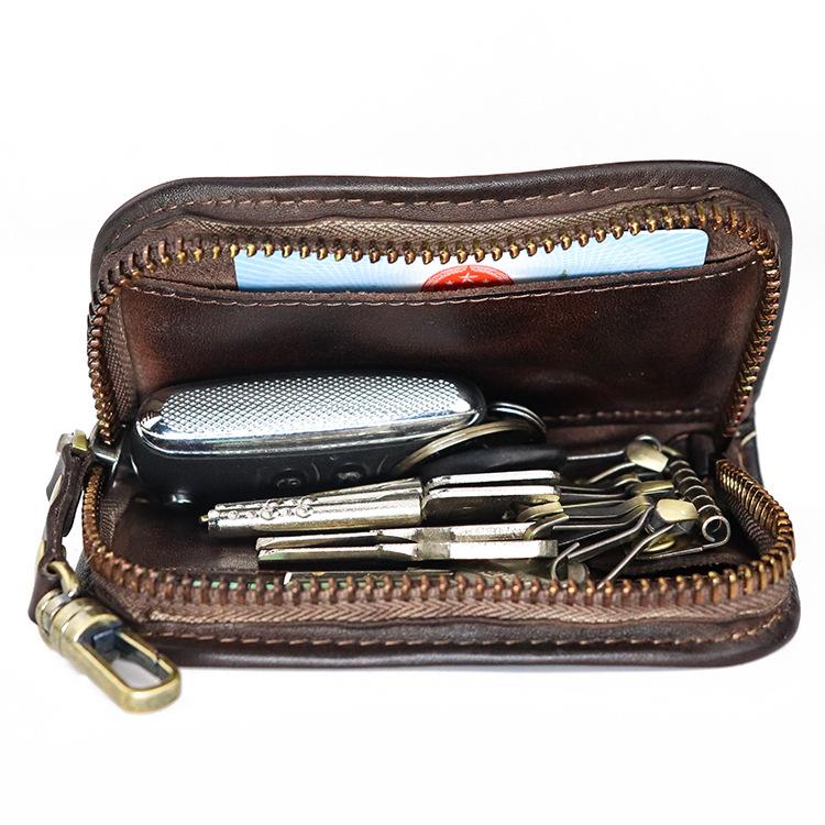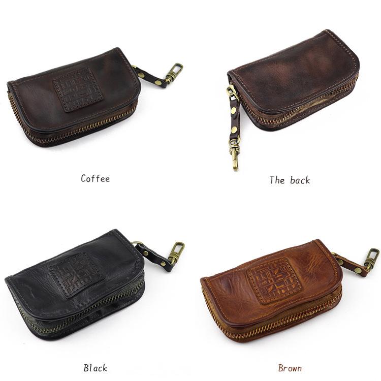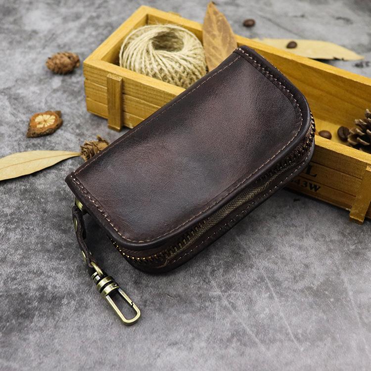 Design: Dark Gray Leather Men's Retro Brown Car Key Wallet Brown Zipper Key Wallet For Men