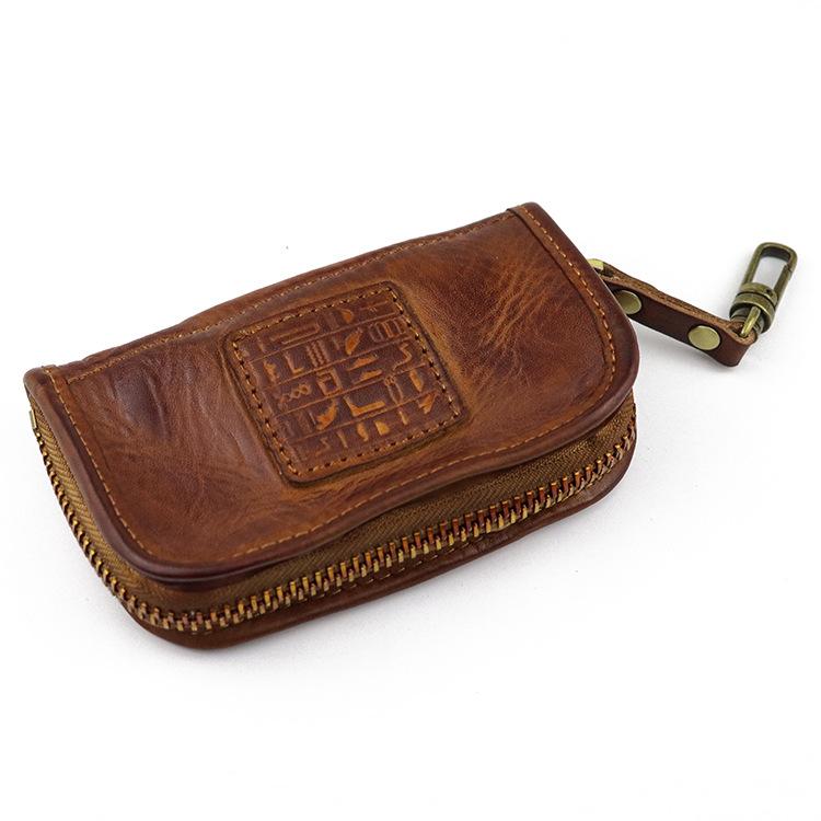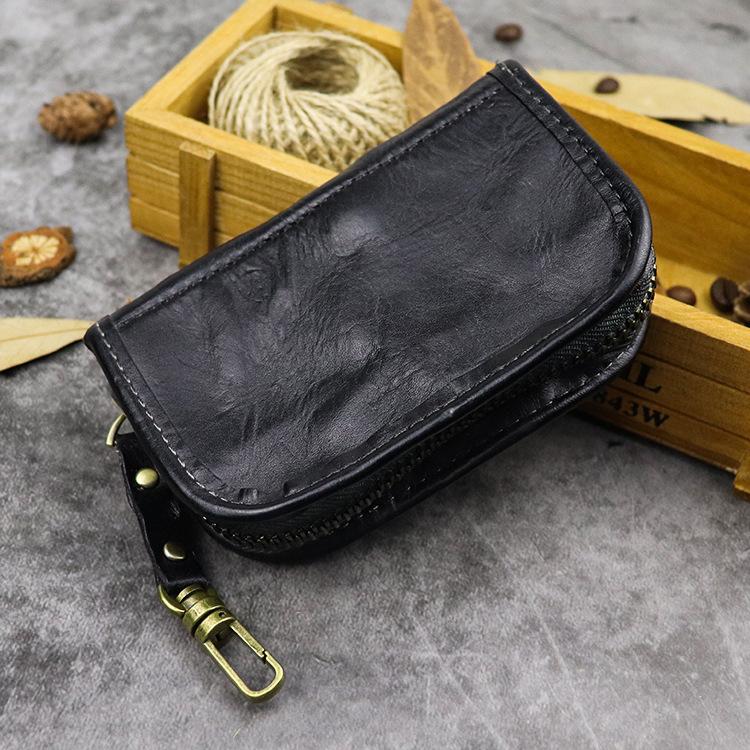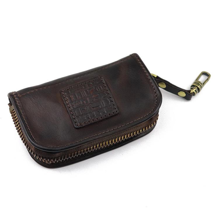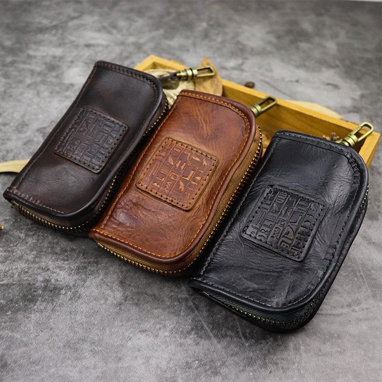 Style: Dark Gray Leather Men's Retro Brown Car Key Wallet Brown Zipper Key Wallet For Men