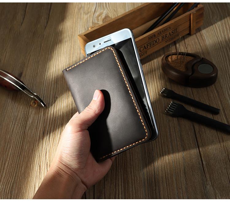 Design: Handmade Coffee Leather Mens Card Holders Wallet Personalized Bifold Card Wallets for Men