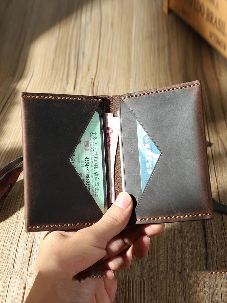 Style: Handmade Black Leather Mens Small Card Holders Wallet Personalized Bifold Card Wallets for Men