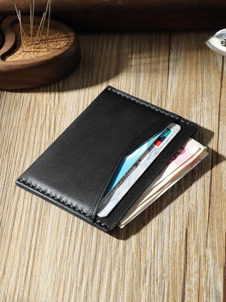 Design: Handmade Black Leather Mens Front Pocket Wallets Personalized Slim Card Wallets for Men