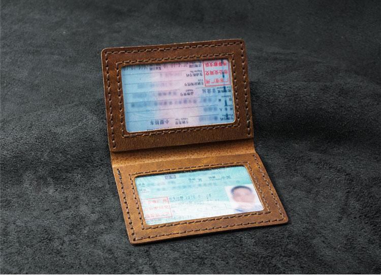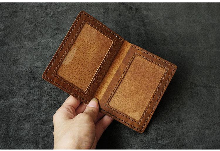 Design: Handmade Brown Leather Mens Slim License Wallets Slim Bifold Card Wallet for Men
