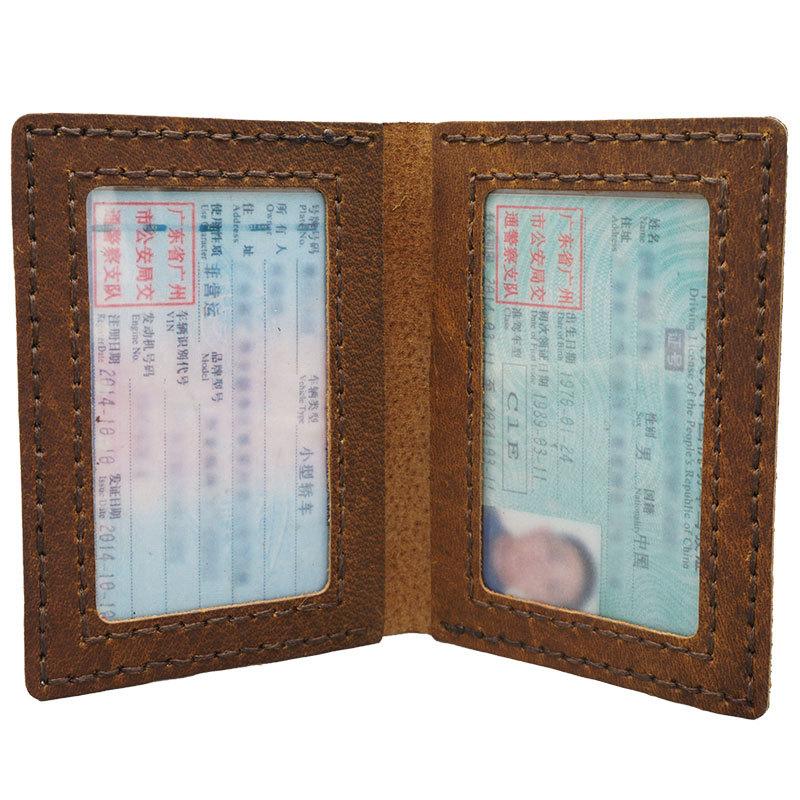 Style: Handmade Brown Leather Mens Slim License Wallets Slim Bifold Card Wallet for Men