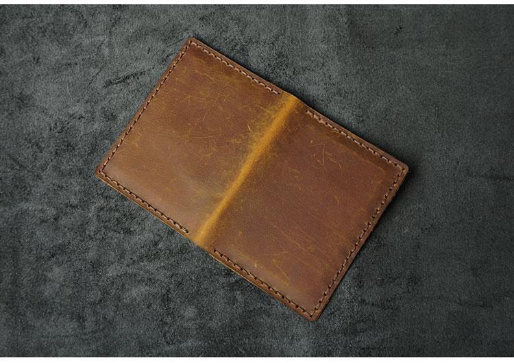 Handmade Brown Leather Mens Slim License Wallets Slim Bifold Card Wallet for Men