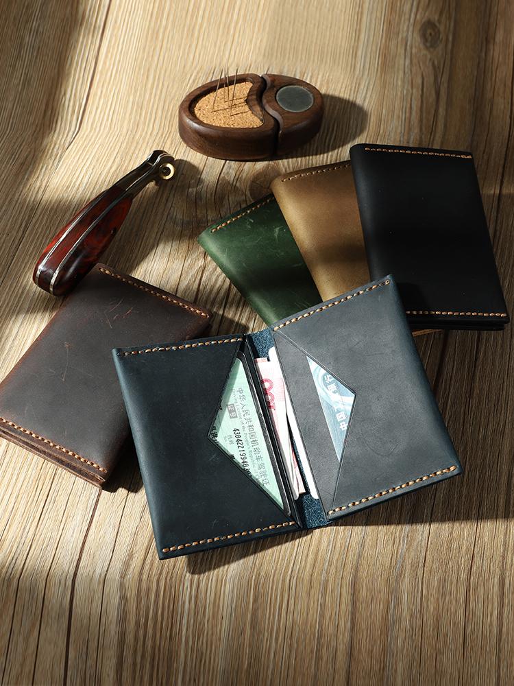 Design: Handmade Coffee Leather Mens Small Card Holders Wallet Personalized Bifold Card Wallets for Men